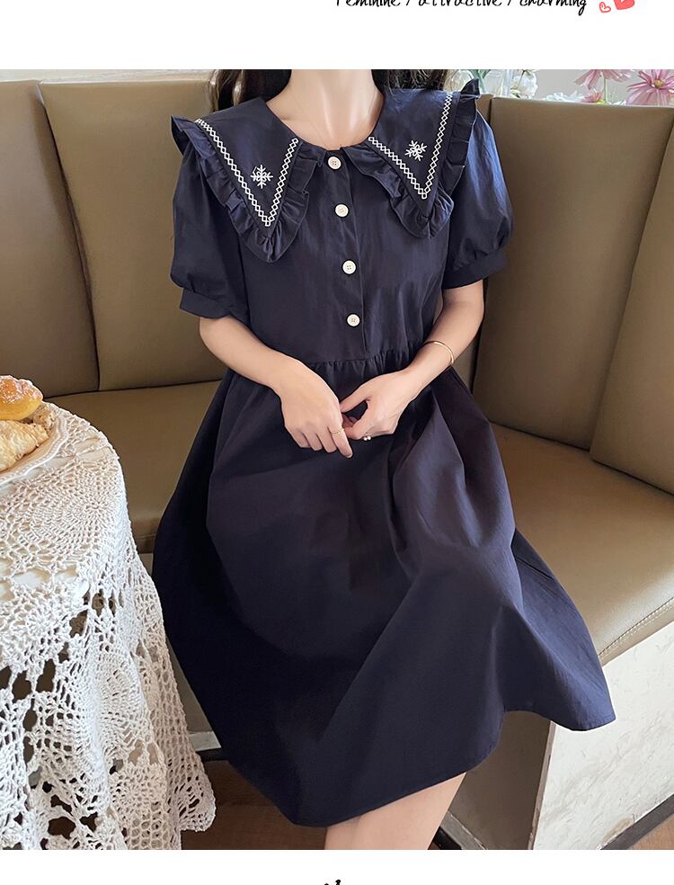 送料無料୨♥୧ サマーレディースドレス カラーホワイトブルーネイビールーズスリーブフローラル刺繍 大人ガーリー スウィート キュート カジュアル 夏物 花柄 AOS20167215556