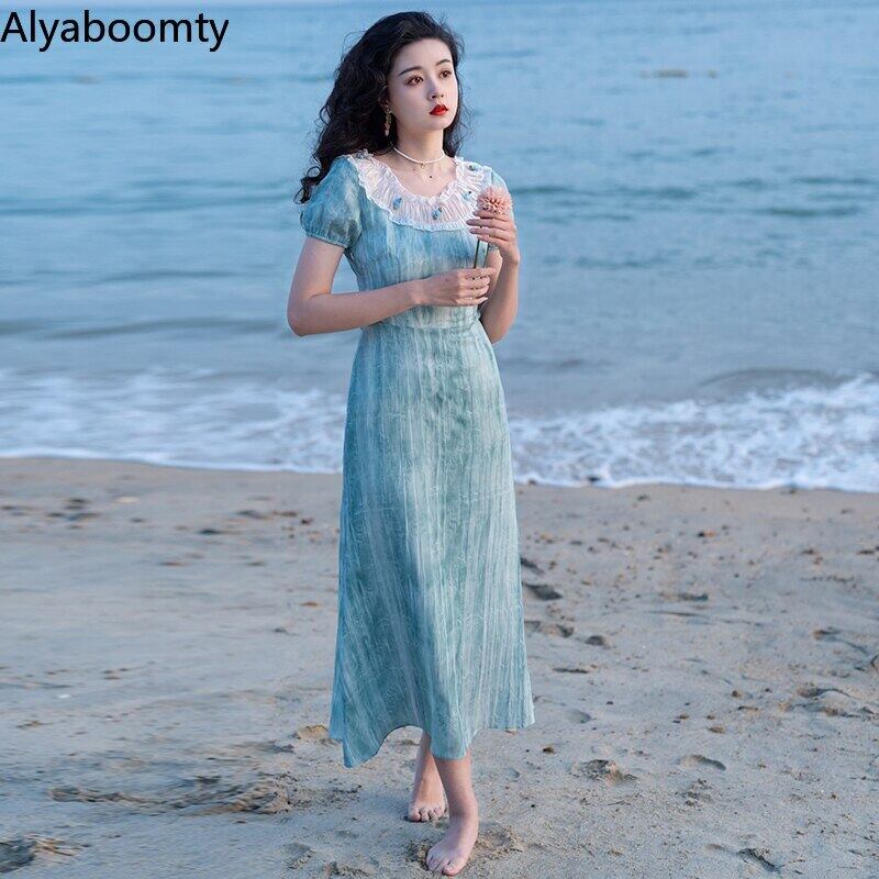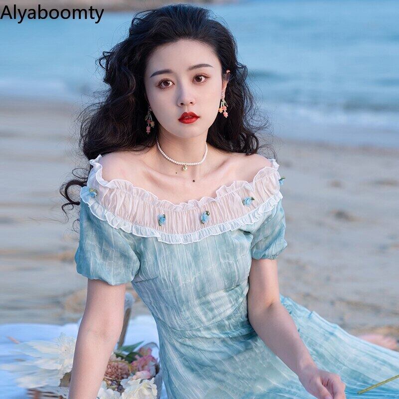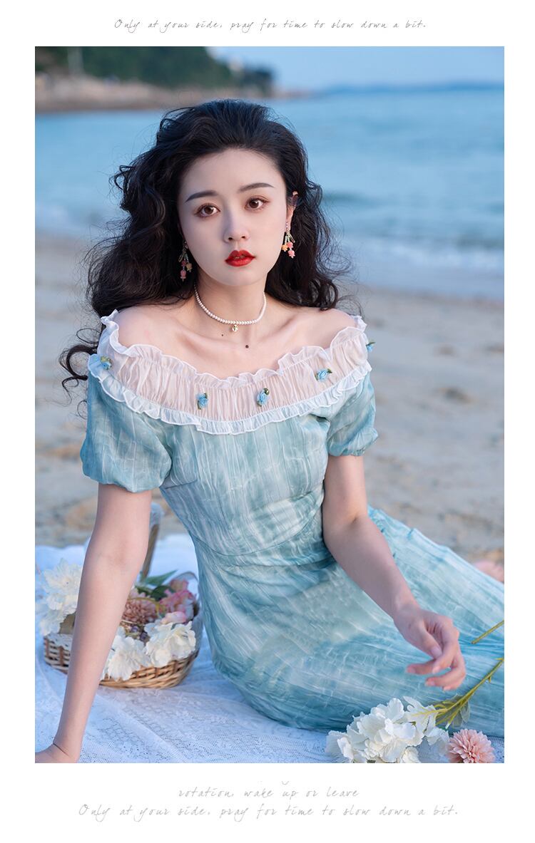 送料無料୨♥୧ サマーレディースミディAラインドレス ブルーフローラルスリーブドレス ワンピース 夏物 花柄 AOS10220465171