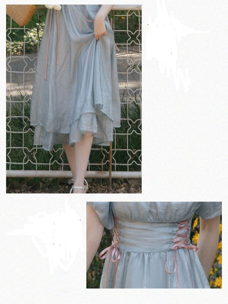 送料無料୨♥୧ サマーレディースロングドレス カラーフローラルバンドスリーブヴィンテージ 夏物 花柄 スクウェア ビンテージ AOS44552987912