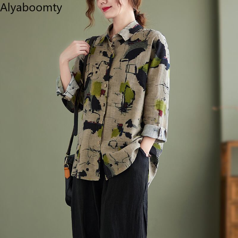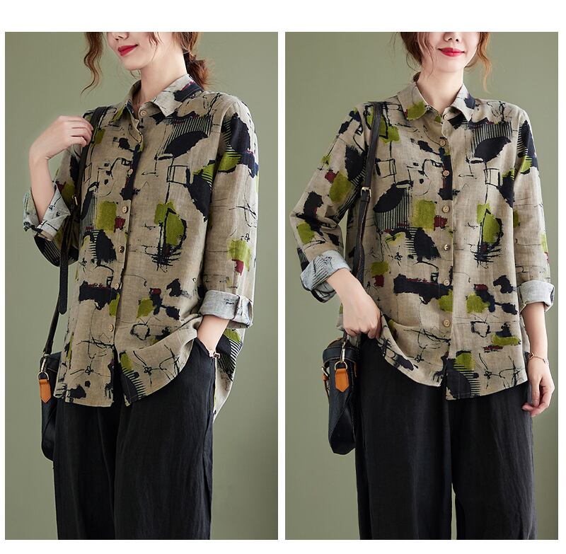 送料無料୨♥୧ オータムスプリングレディースヴィンテージブラウス カラープリントシャツ コットン 春物 秋物 ビンテージ AOS85334964634