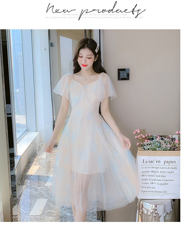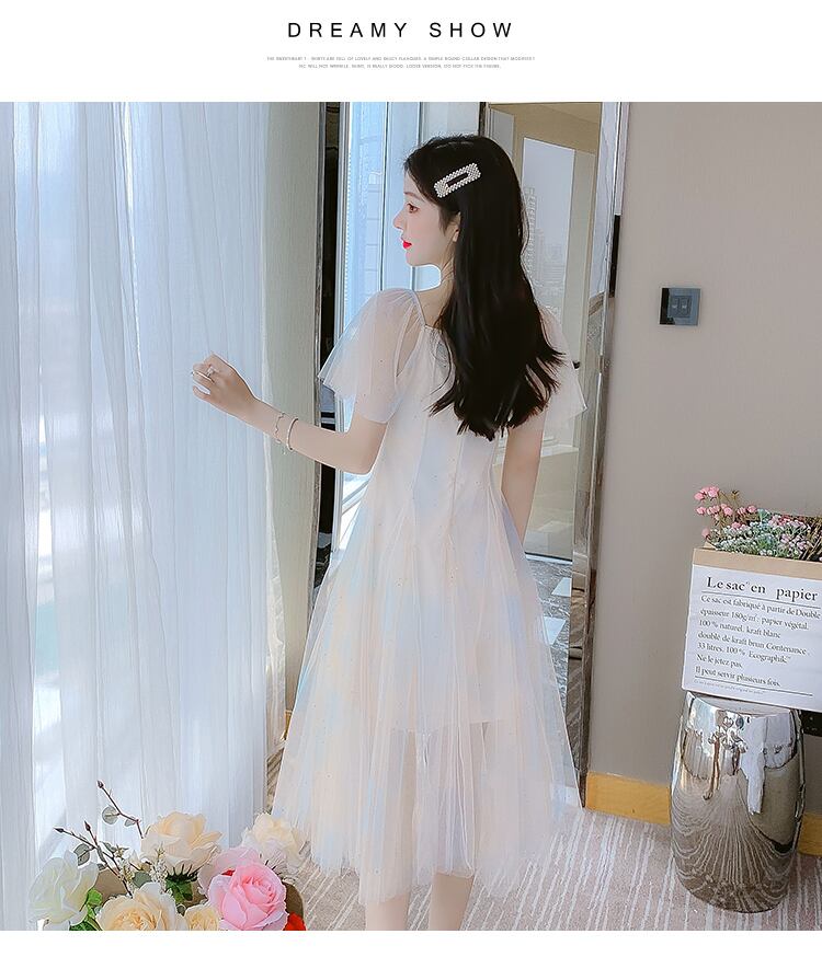 送料無料୨♥୧ サマーレディースメッシュミディドレス Vネックカラースリーブ 夏物 AOS29840368185