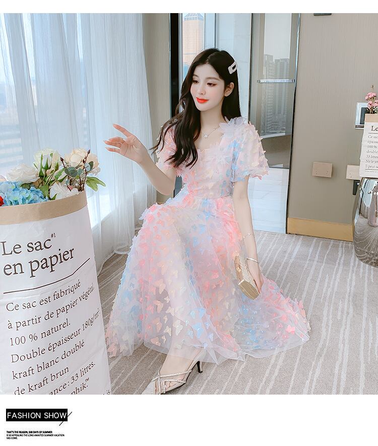 送料無料୨♥୧ サマーレディースロングドレス カラーButterflyデザイン スリーブ 夏物 スクウェア AOS4834867966