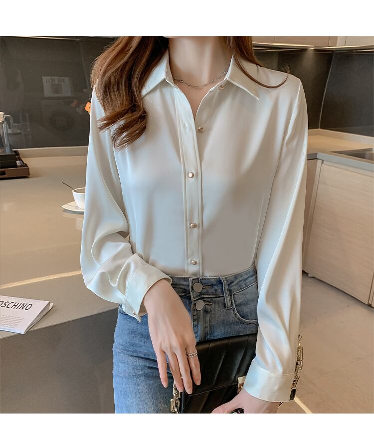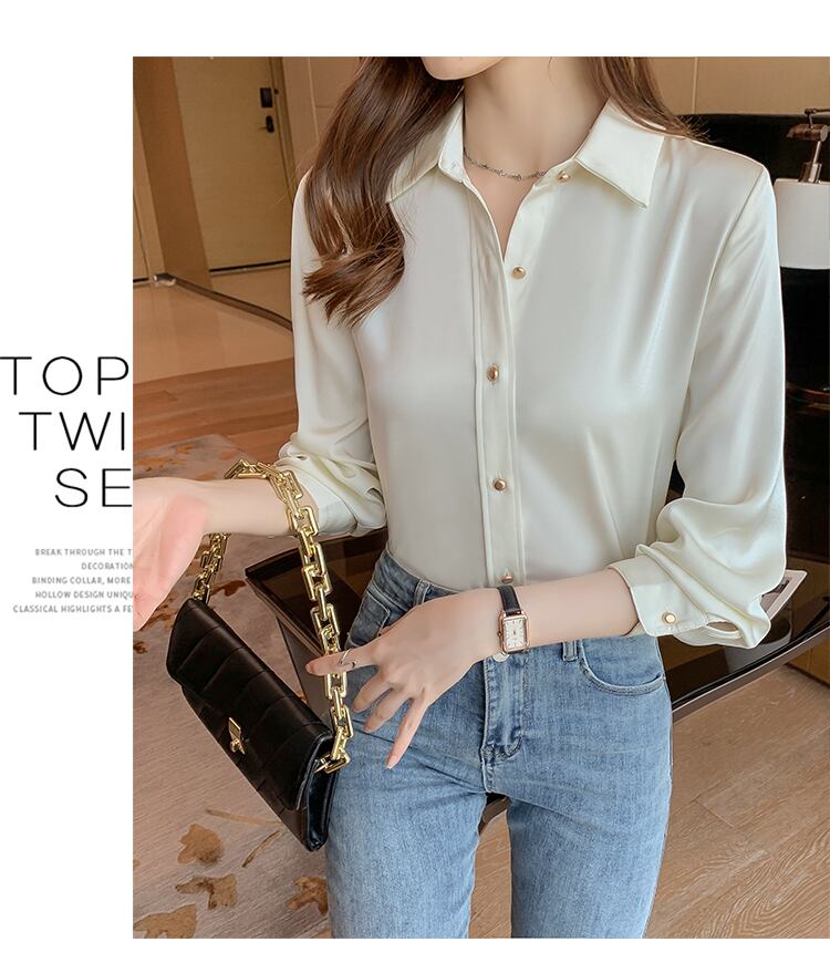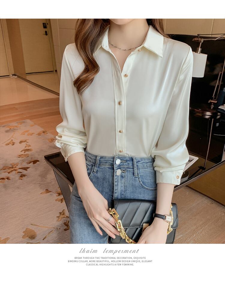 送料無料୨♥୧ スプリングオータムレディースソリッド シャツ カラーブラウス 長袖スリーブサテン ロング 春物 秋物 ソリッドカラー 会社 学校 通勤や通学にも AOS22065512843
