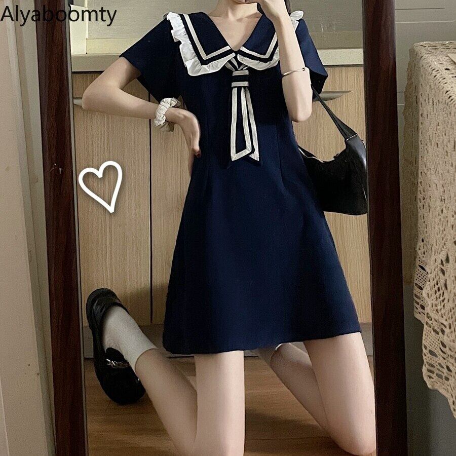 送料無料୨♥୧ サマーレディーススタイルミニドレス カラーブラックネイビー半袖スリーブ ショート ハーフスリーブ 大人ガーリー スウィート キュート カジュアル 夏物 AOS7920871275