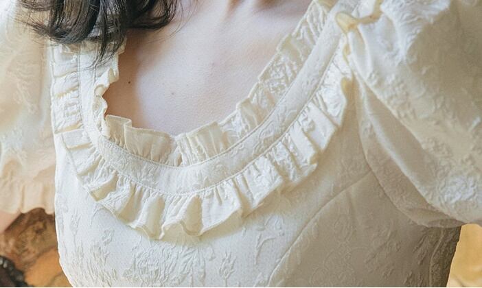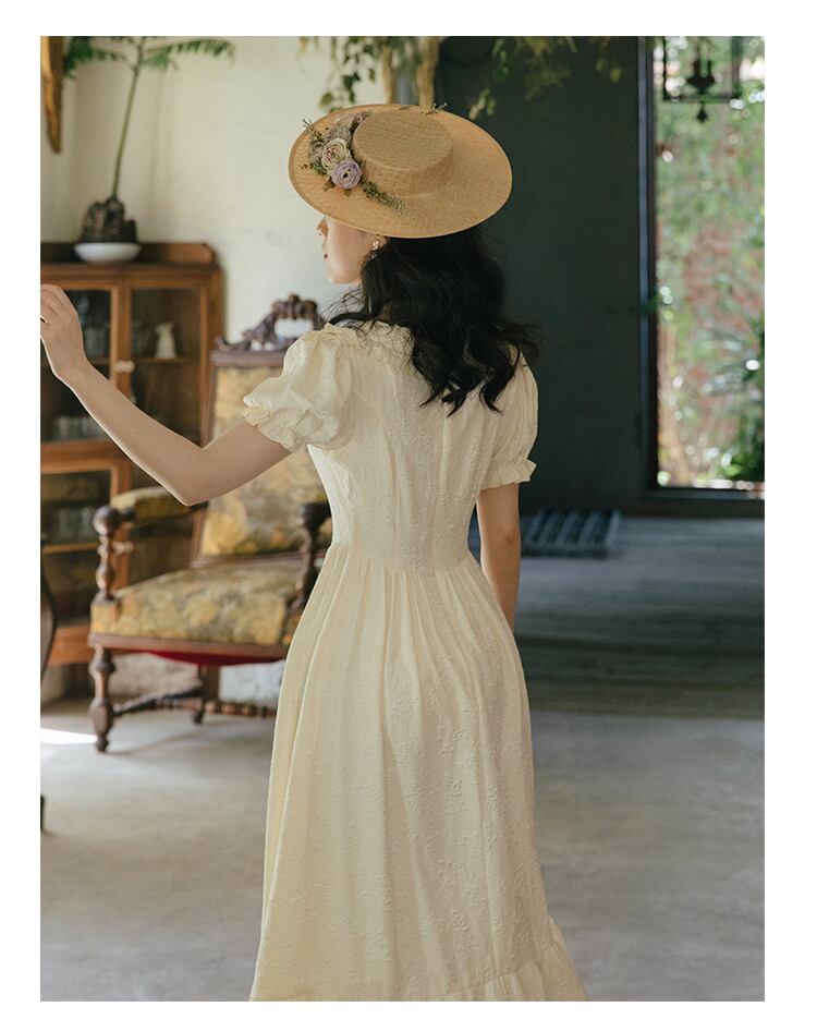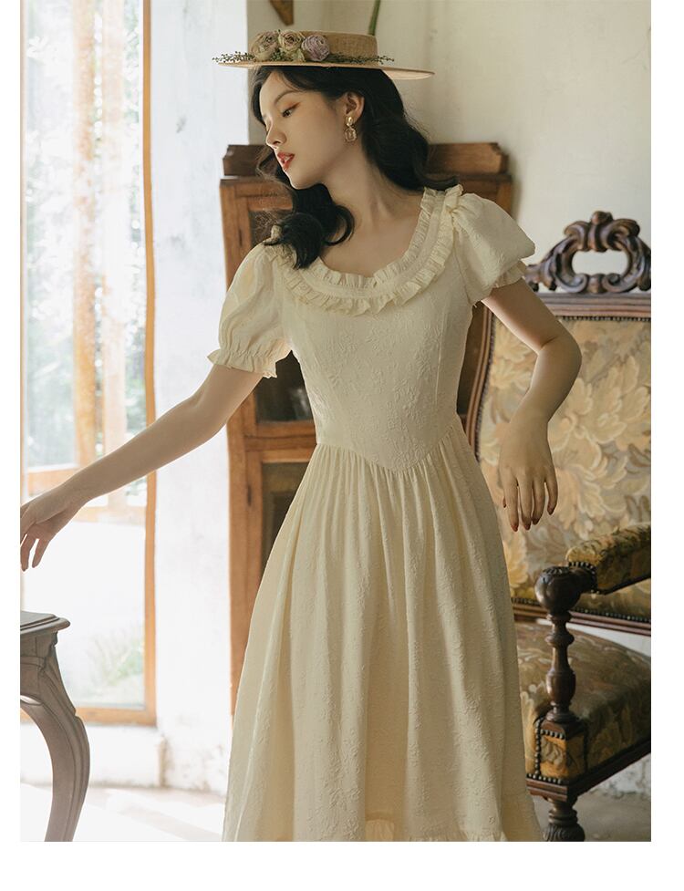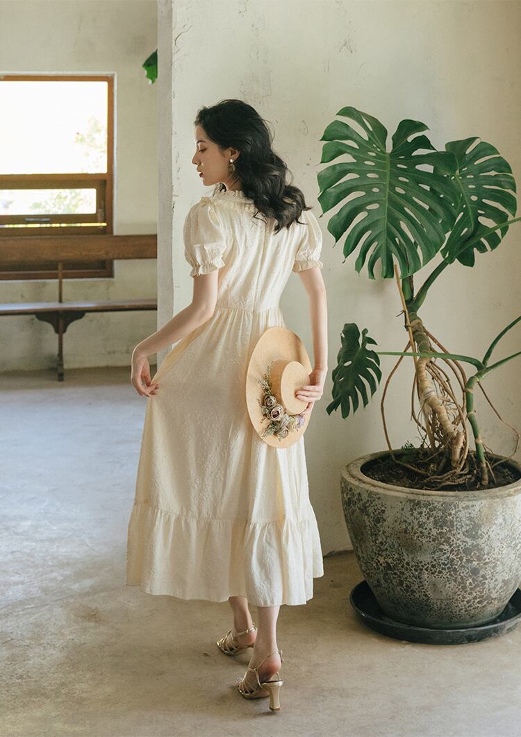 送料無料୨♥୧ サマーレディースロングドレス ジャカードスリーブフリル ラッフル 夏物 Oネック AOS5433358188