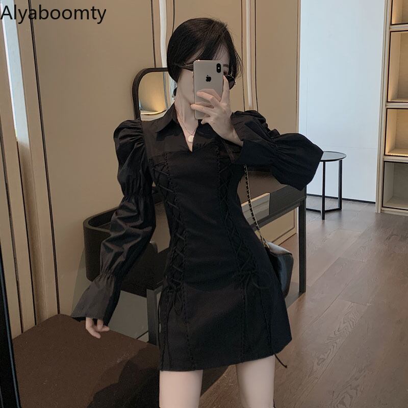 送料無料୨♥୧ レディースオータムストリートウェアミニドレス ホワイトブラックバンドスリーブ かわいい 秋物 AOS35551719788