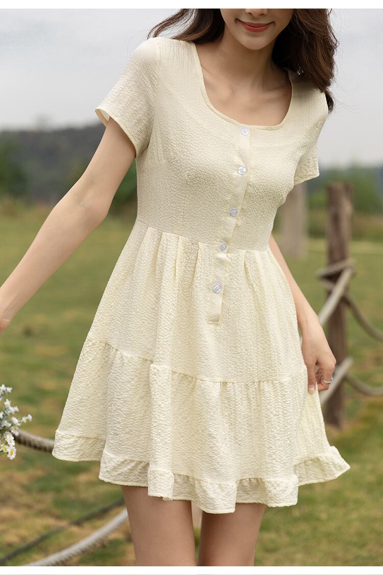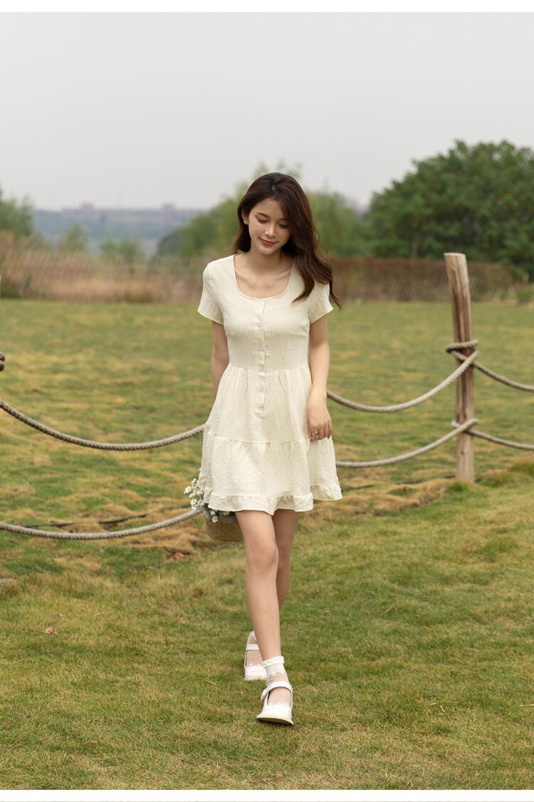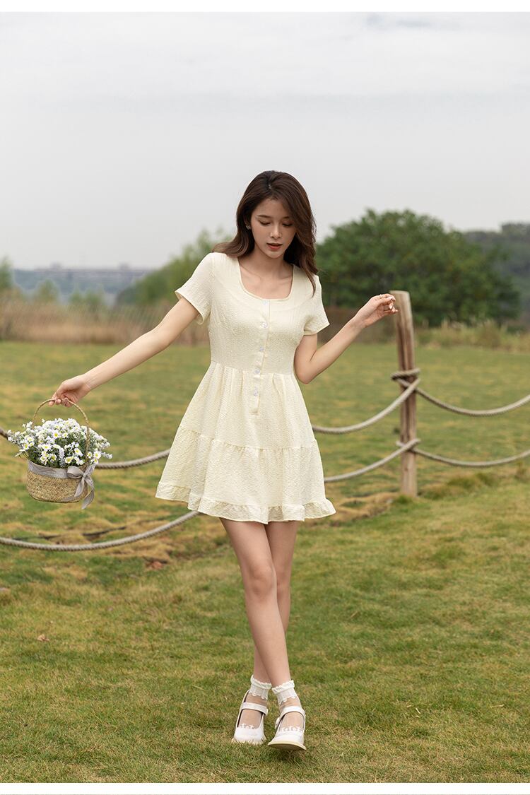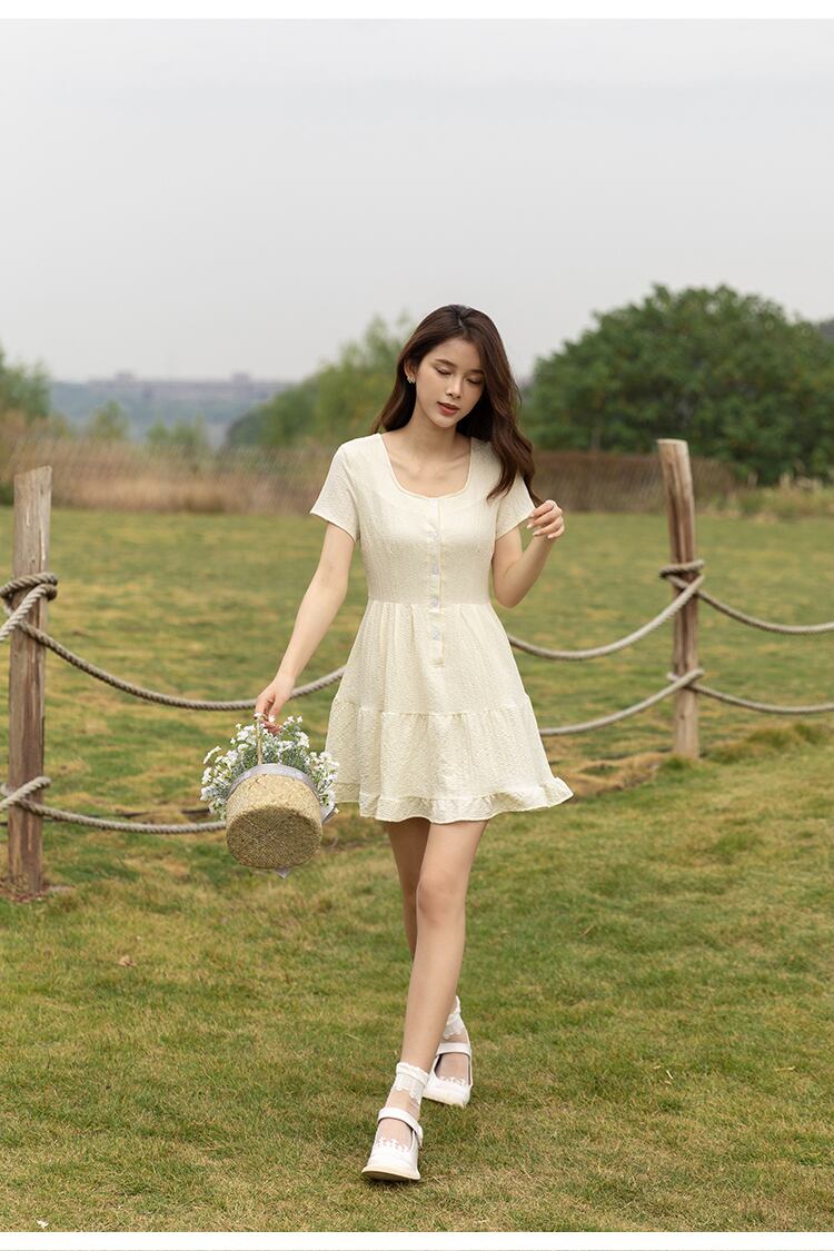 送料無料୨♥୧ サマーレディースミニドレス 半袖スリーブフリルドレス ワンピース ショート ハーフスリーブ ラッフル 大人ガーリー スウィート キュート カジュアル 夏物 Oネック AOS13536774671