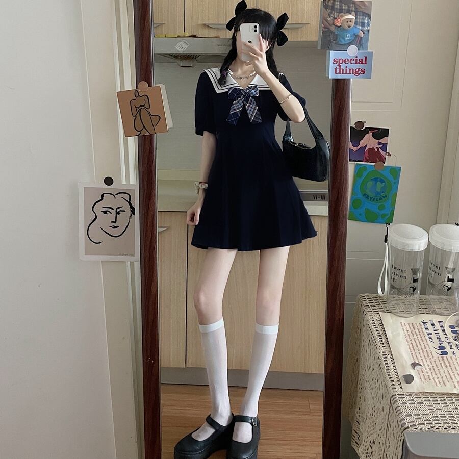 送料無料୨♥୧ サマーレディースミニドレス スタイルカラーリボンブラックショート 大人ガーリー スウィート キュート カジュアル かわいい 夏物 AOS37968952821