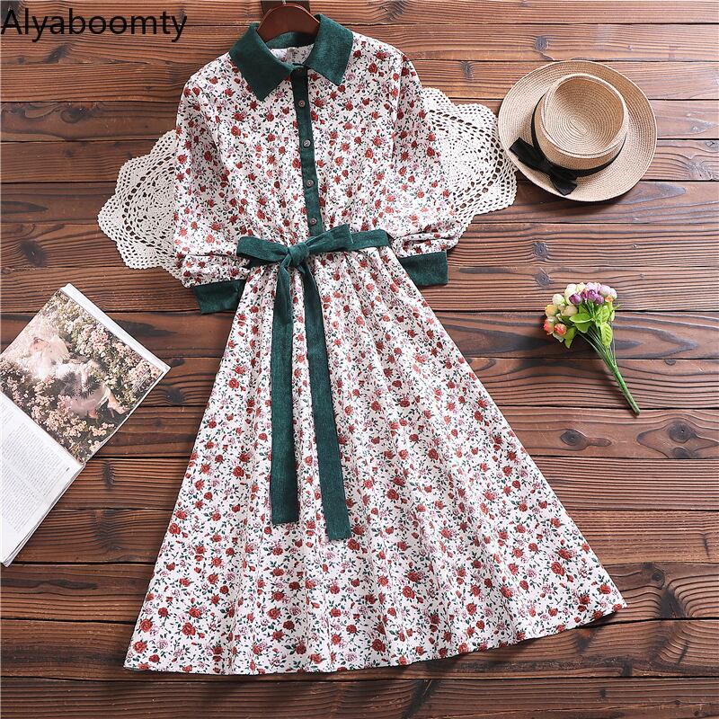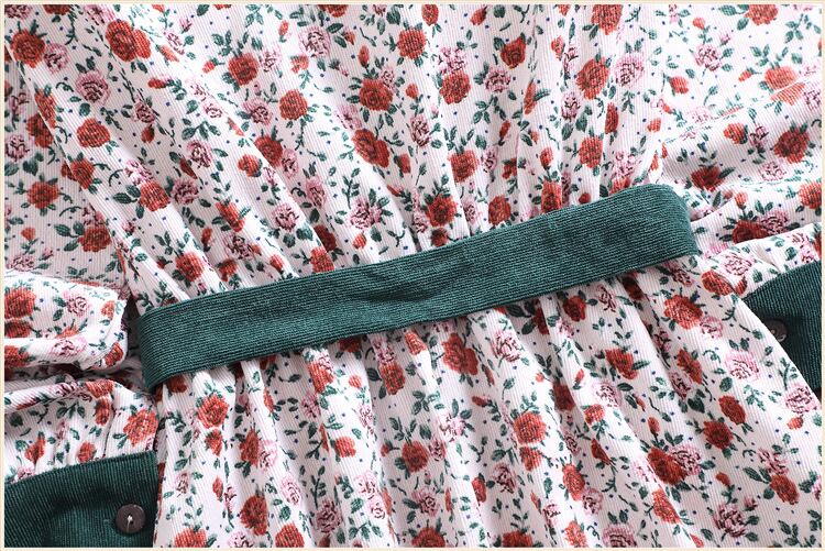 送料無料୨♥୧ スプリングオータムレディースドレス カラールーズヴィンテージフローラルコーデュロイロング 春物 秋物 花柄 ビンテージ AOS46660728329