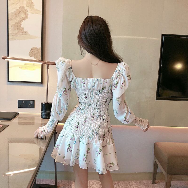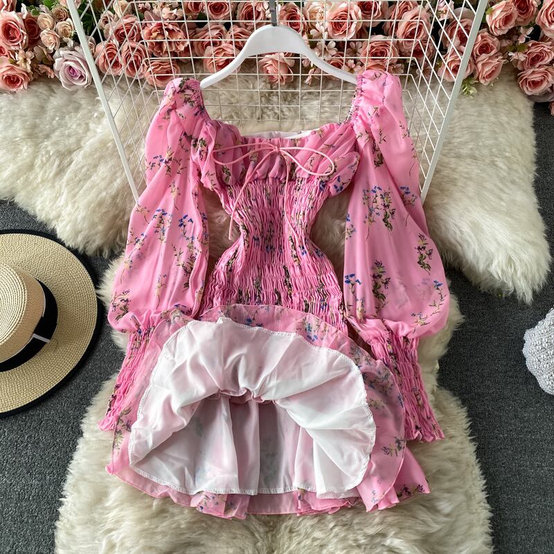 送料無料୨♥୧ ボヘミアンサマーレディースミニAラインドレス ホワイトフローラルプリントパッチワークフリル ピンク ラッフル 夏物 花柄 AOS26683619965