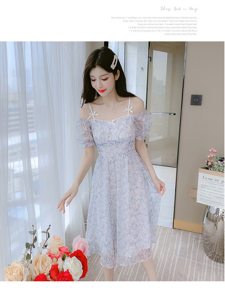 送料無料୨♥୧ サマーレディースフローラルAラインドレス プリントリボンシフォン 大人ガーリー スウィート キュート カジュアル 夏物 花柄 フラワーデザイン AOS82562602492
