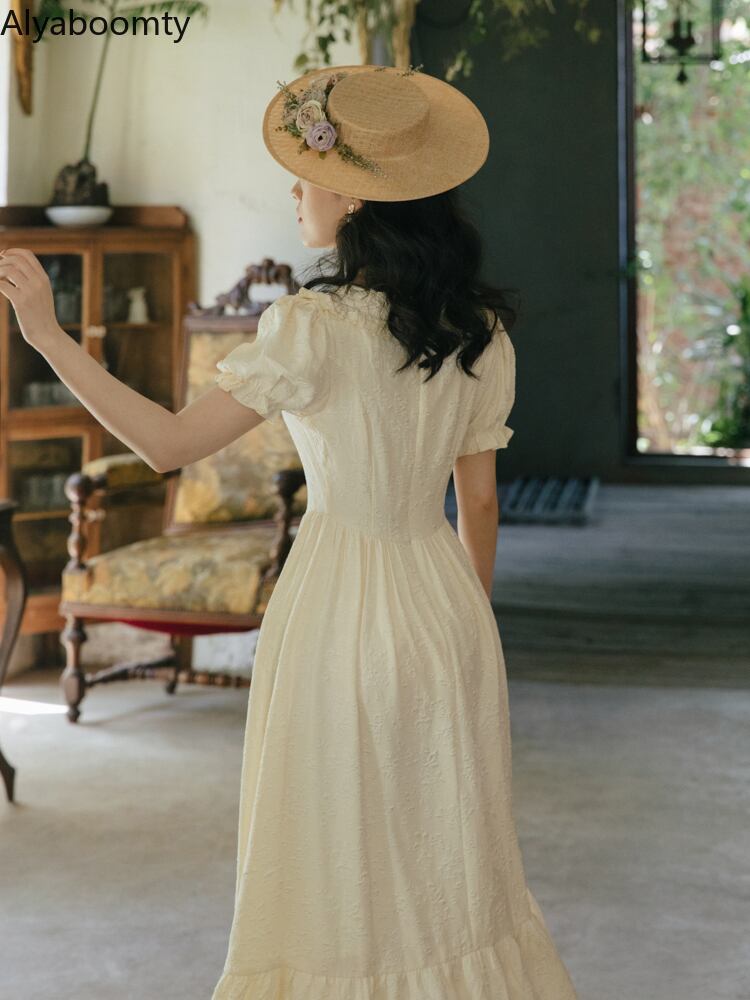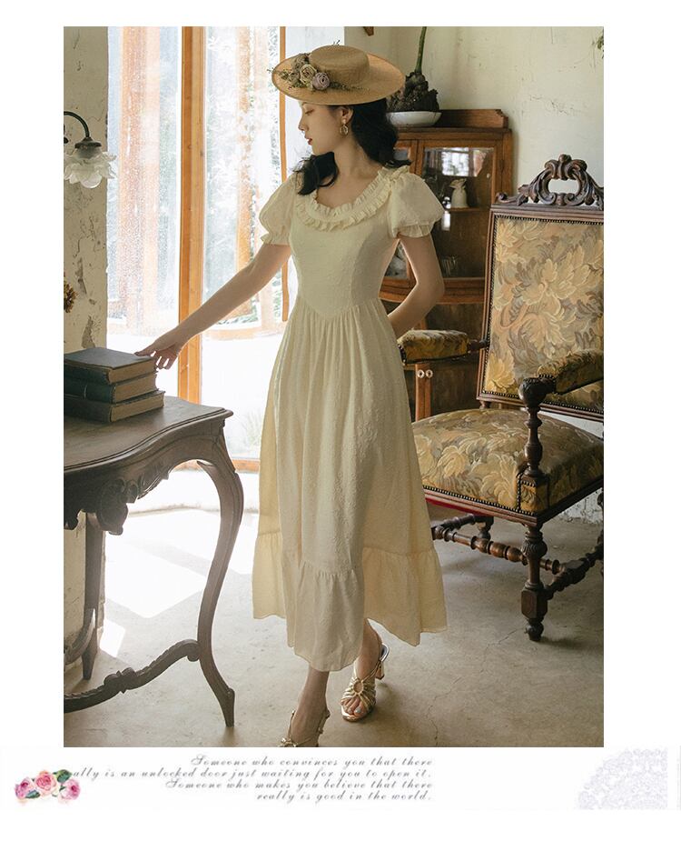 送料無料୨♥୧ サマーレディースロングドレス ジャカードスリーブフリル ラッフル 夏物 Oネック AOS84920909182