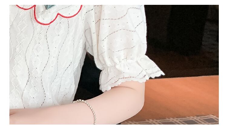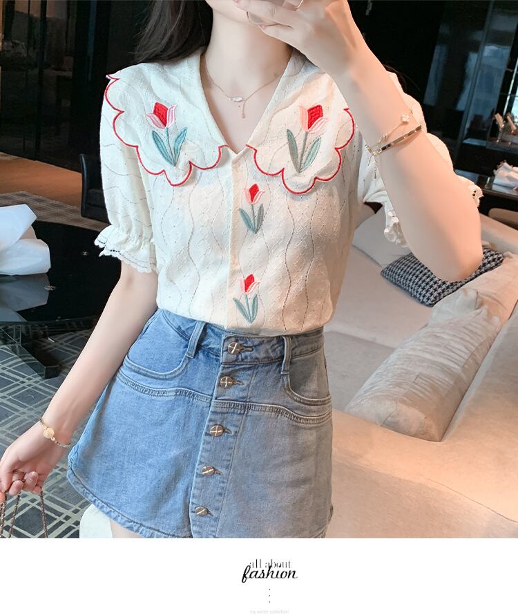 送料無料୨♥୧ サマーレディースレーストップス カラーフローラル刺繍シャツ スリーブブラウス 大人ガーリー スウィート キュート カジュアル 夏物 花柄 会社 学校 通勤や通学にも AOS14827163311