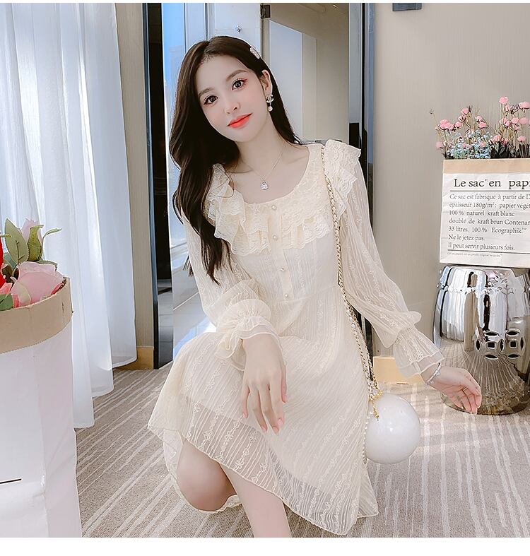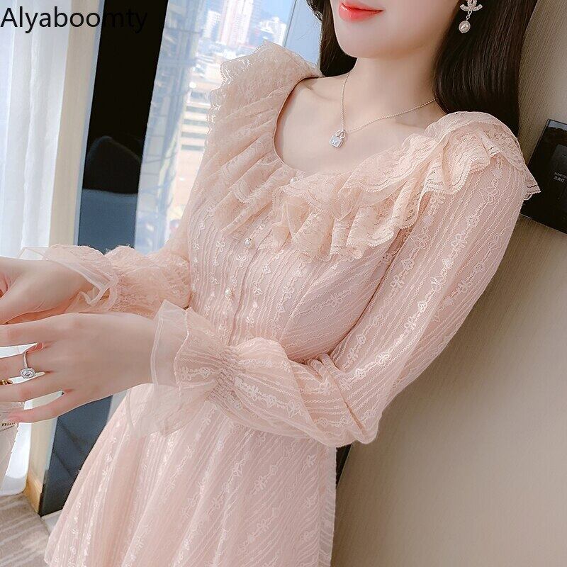 送料無料୨♥୧ スプリングレディースミニドレス カラーAライン長袖スリーブレース ロング ピンク 大人ガーリー スウィート キュート カジュアル 春物 AOS36414623562