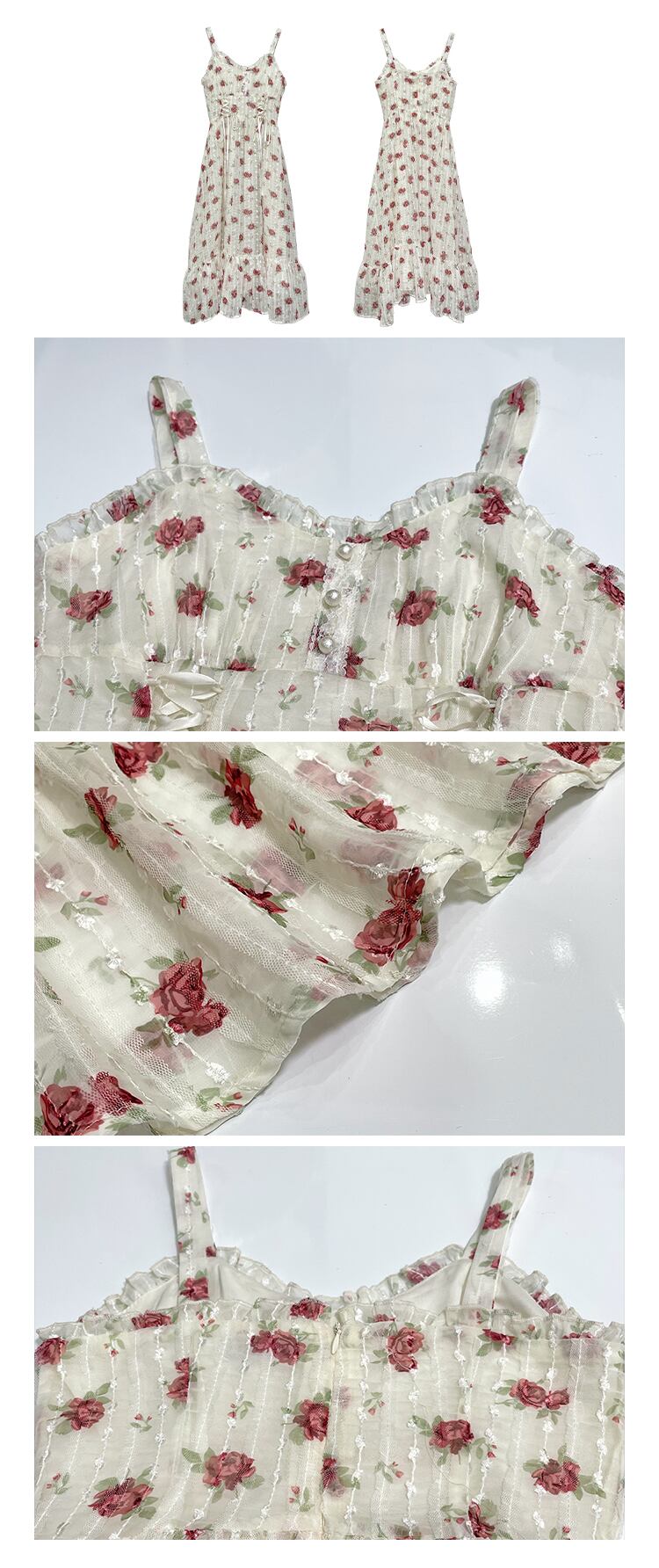 送料無料୨♥୧ サマーレディースフローラルミディドレス 刺繍バンドノースリーブフリルプリント柄 ラッフル 夏物 花柄 AOS31073749251