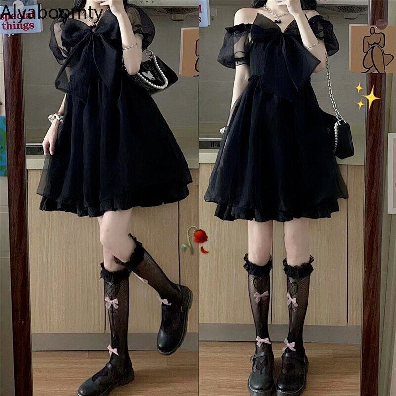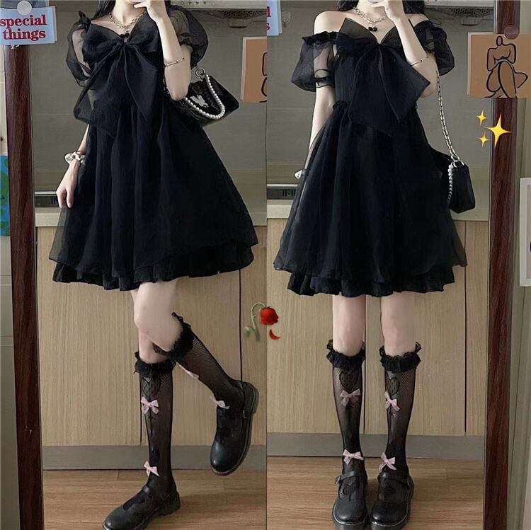 送料無料୨♥୧ サマーレディースブラックミニドレス リボンウェストメッシュ 大人ガーリー スウィート キュート カジュアル かわいい 夏物 AOS17074857506