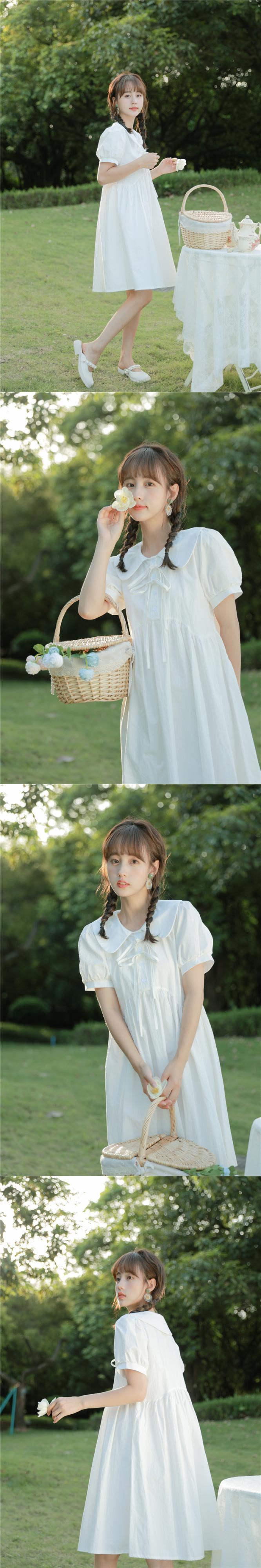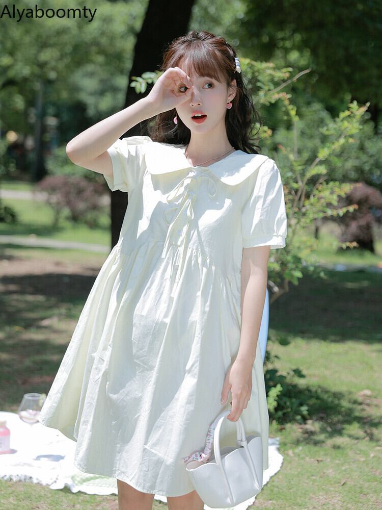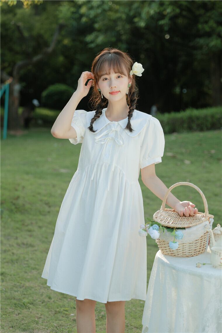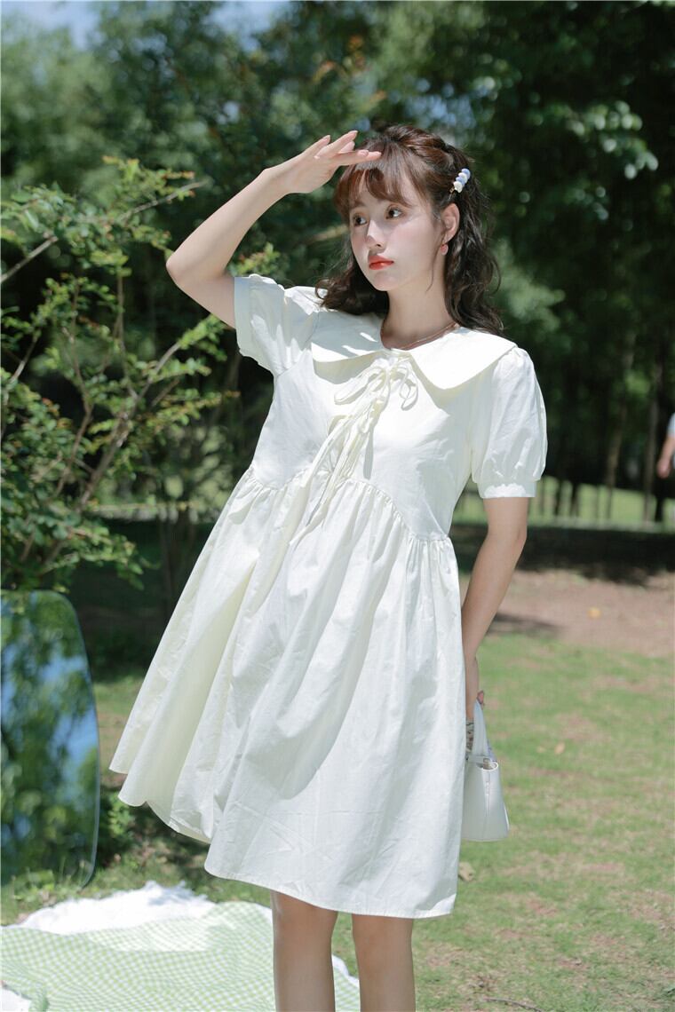 送料無料୨♥୧ サマーレディースショートドレス カラーホワイトルーズスリーブスタイルミニ コットン 大人ガーリー スウィート キュート カジュアル 夏物 AOS30226262764