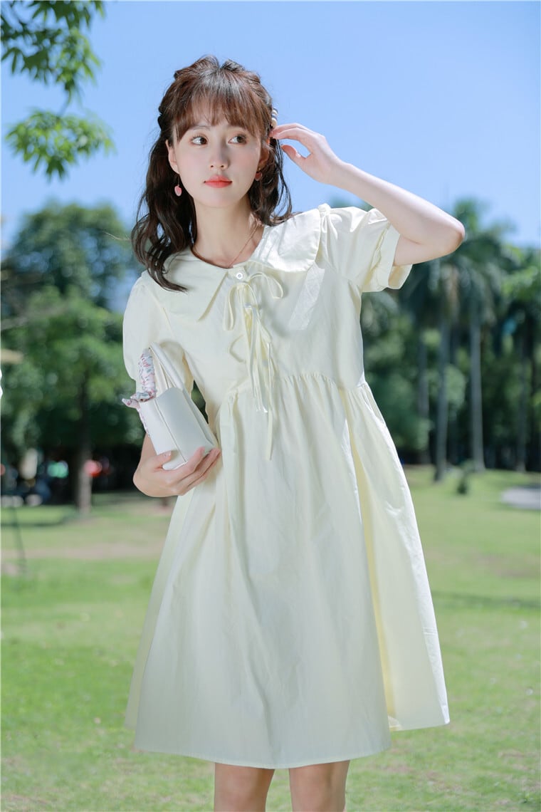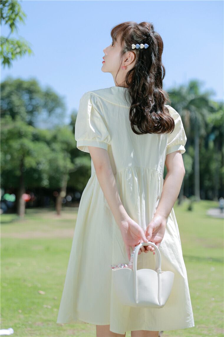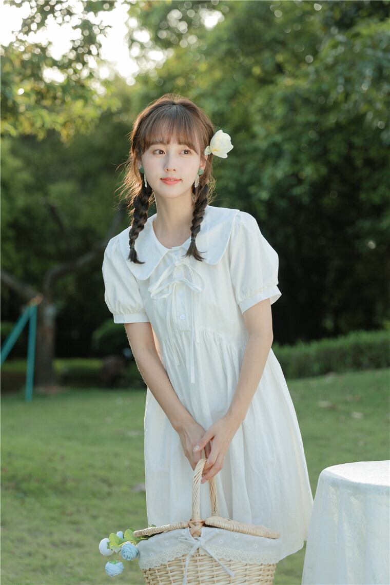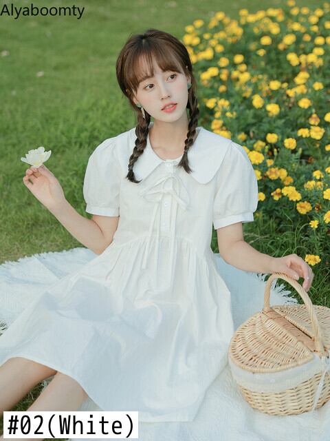 送料無料୨♥୧ サマーレディースショートドレス カラーホワイトルーズスリーブスタイルミニ コットン 大人ガーリー スウィート キュート カジュアル 夏物 AOS30226262764