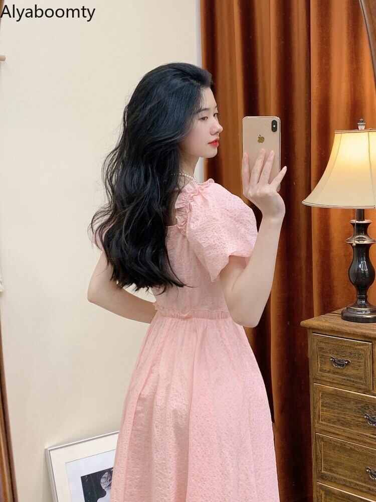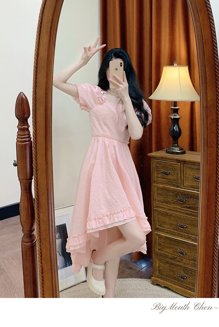 送料無料୨♥୧ サマーレディースドレス カラーフローラルスリーブフリルドレス ワンピース ピンク ラッフル 大人ガーリー スウィート キュート カジュアル 夏物 花柄 スクウェア AOS93461355763