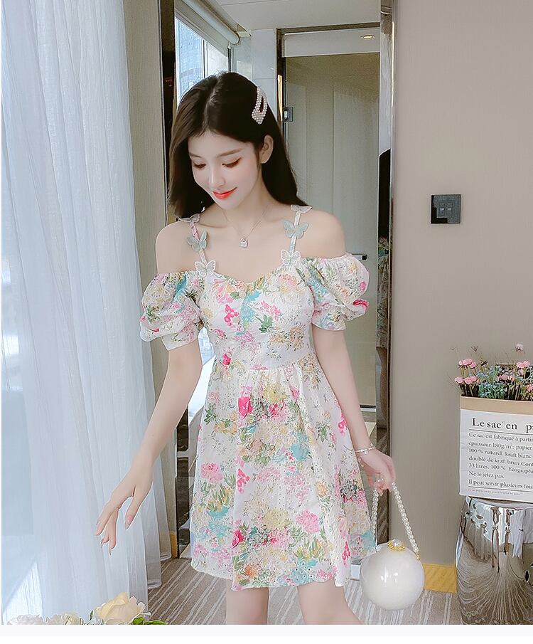送料無料୨♥୧ サマーレディースミニドレス Butterflyデザイン フローラルオフショルダーショート 夏物 花柄 AOS52314563885