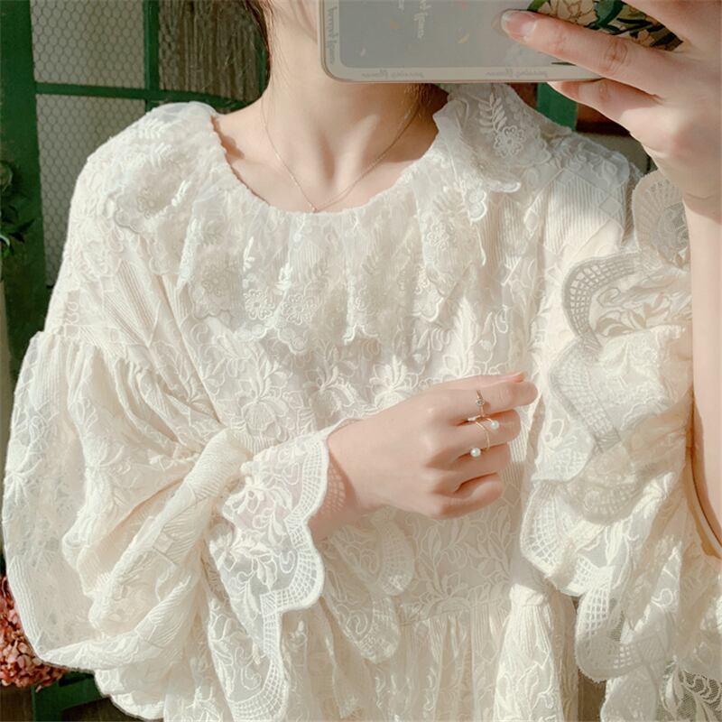 送料無料୨♥୧ スタイルサマーレディースドレス カラー刺繍スリーブレースドレス ワンピース ランタンスリーブ 夏物 AOS17605073101