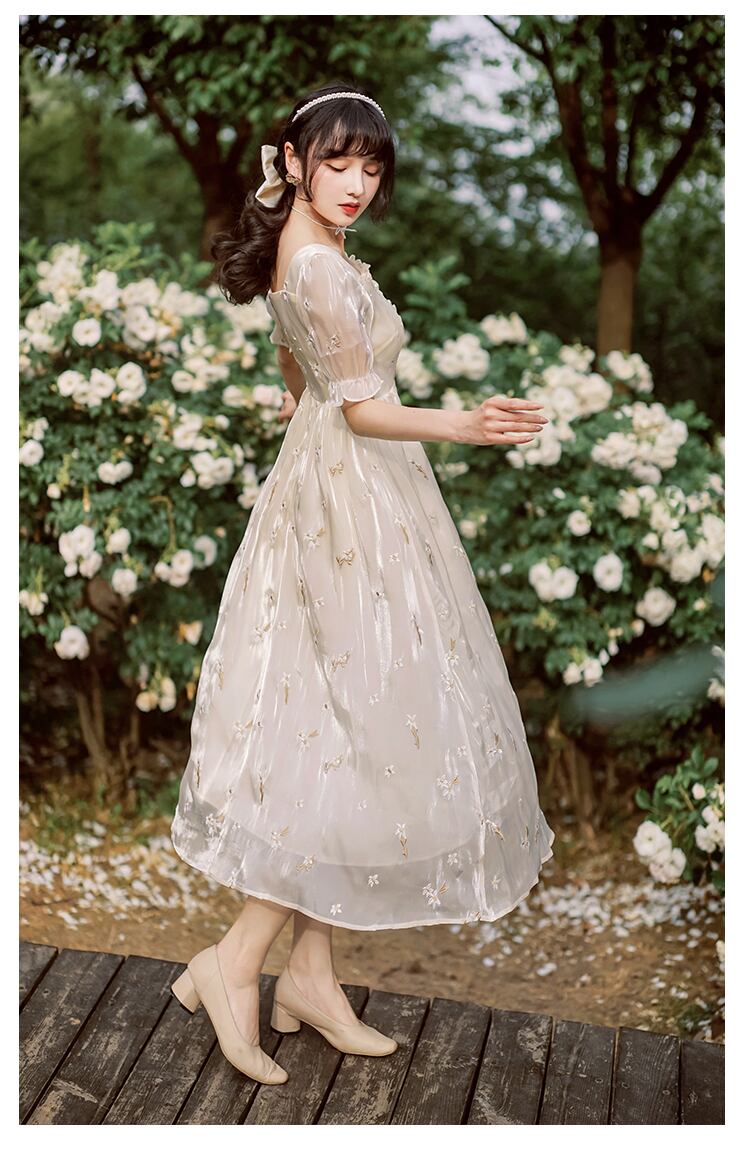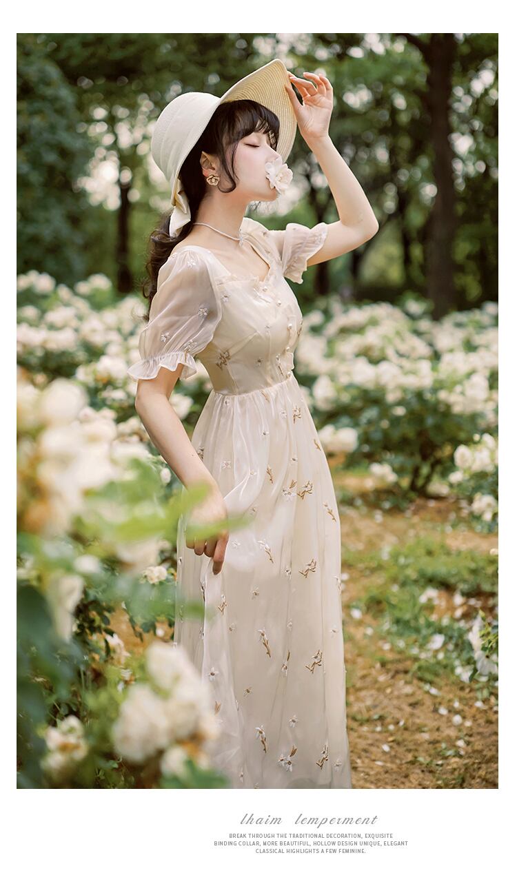 送料無料୨♥୧ サマーレディースミディドレス カラーフローラル刺繍スリーブ 大人ガーリー スウィート キュート カジュアル 夏物 花柄 スクウェア AOS41050144130
