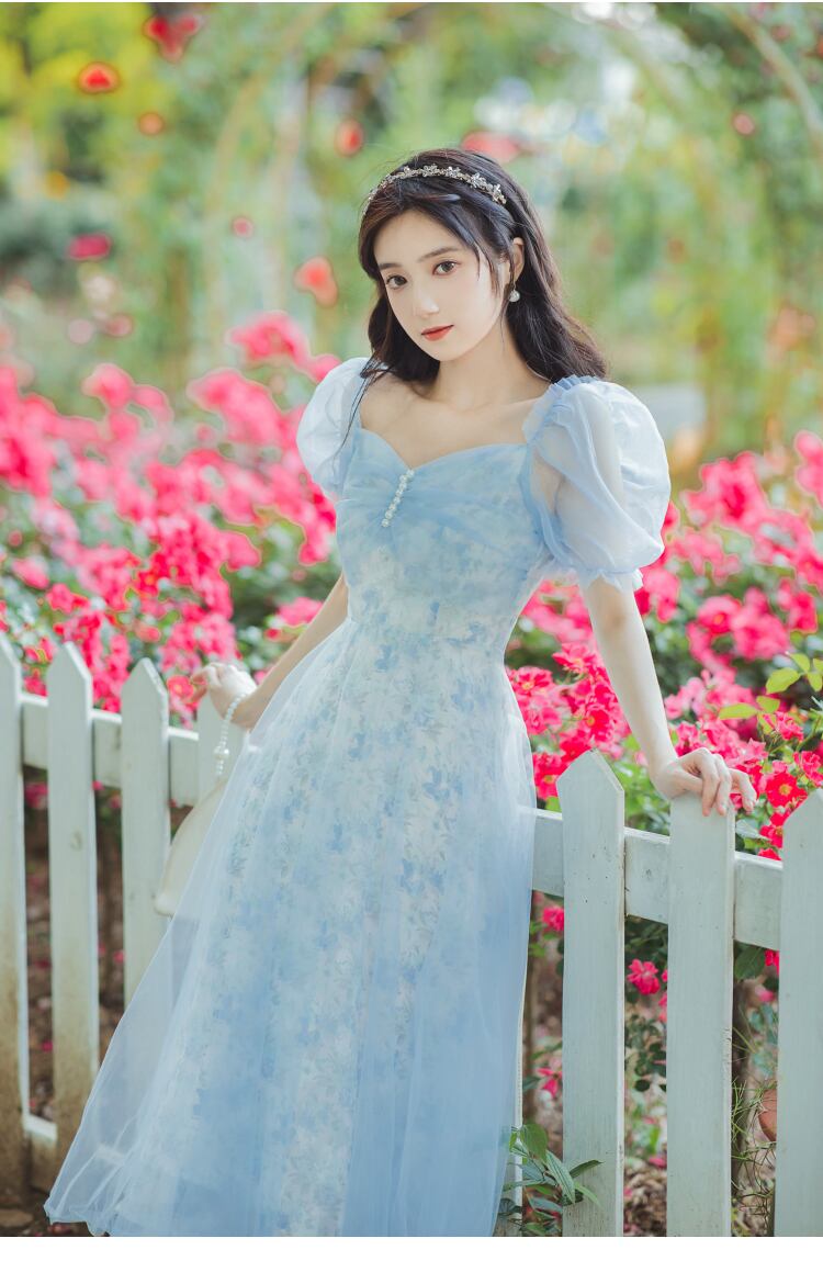 送料無料୨♥୧ サマーレディースロングドレス カラープリント柄メッシュパッチワークスリーブ 夏物 スクウェア AOS34975886788