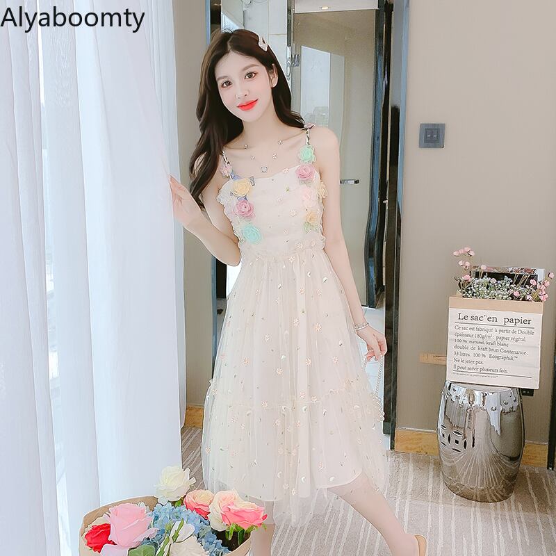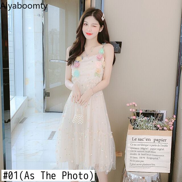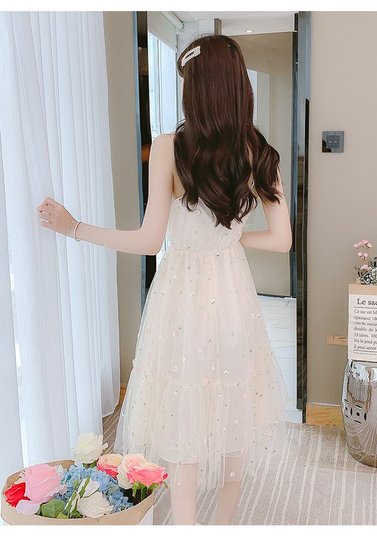 送料無料୨♥୧ サマーレディースドレス フローラル刺繍メッシュノースリーブ 大人ガーリー スウィート キュート カジュアル 夏物 花柄 AOS21872363024