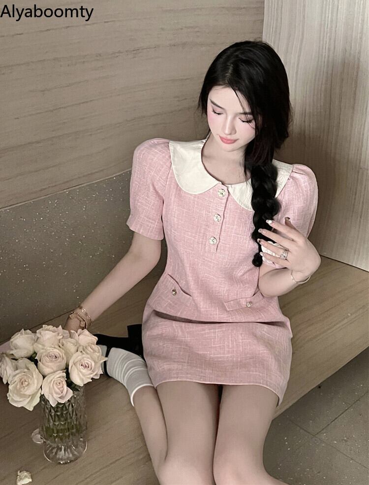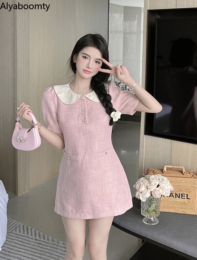 送料無料୨♥୧ スタイルサマーレディースミニドレス カラースリーブショートスリム ピンク 大人ガーリー スウィート キュート カジュアル 夏物 AOS62545836141