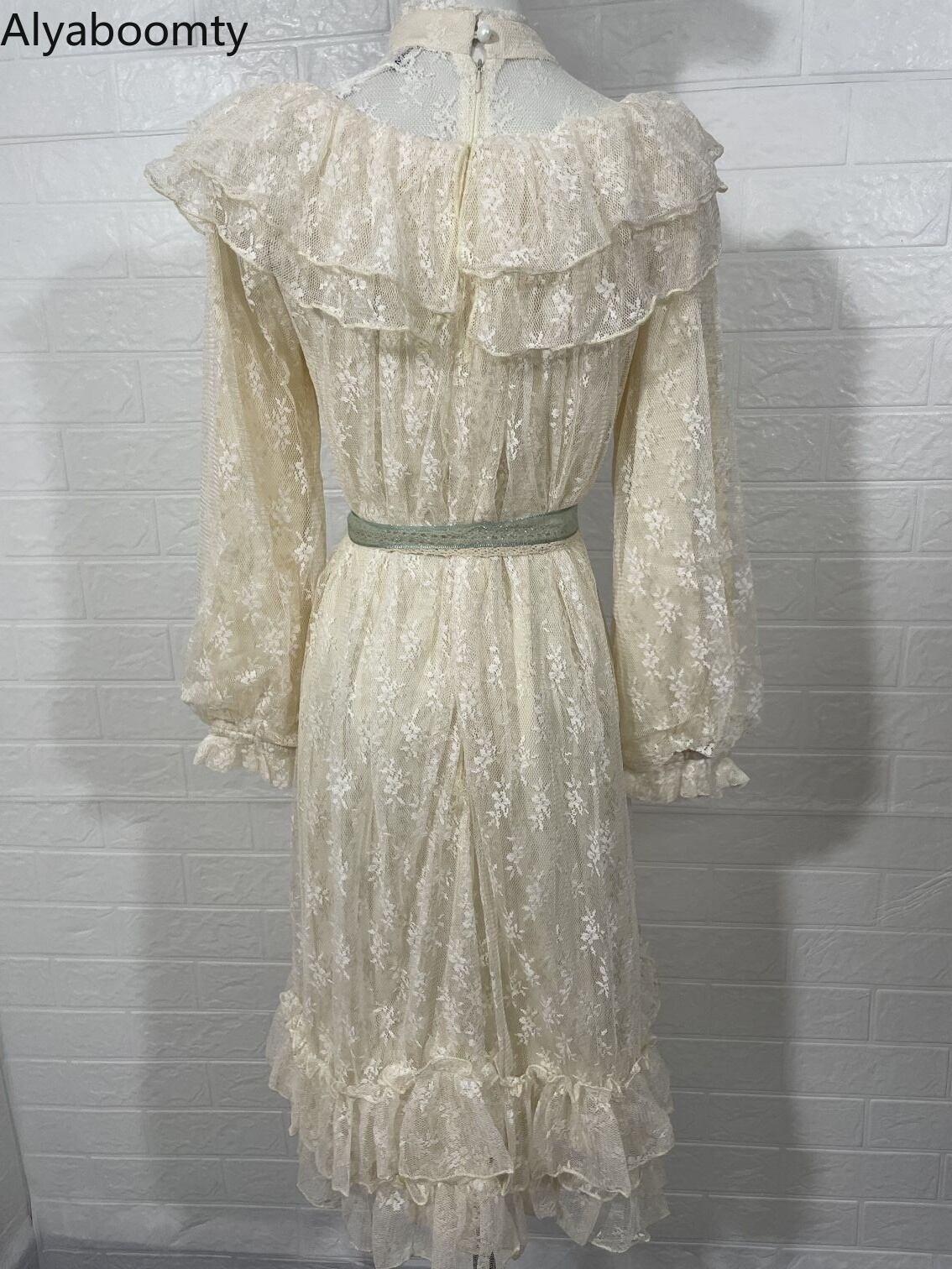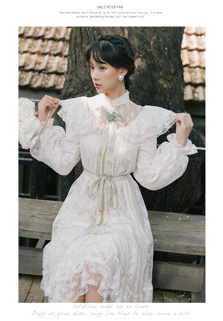 送料無料୨♥୧ スプリングオータムレディースドレス スタンドカラーカラーリボンフローラルレースフリル レッド ラッフル 大人ガーリー スウィート キュート カジュアル 春物 秋物 花柄 AOS98798082546
