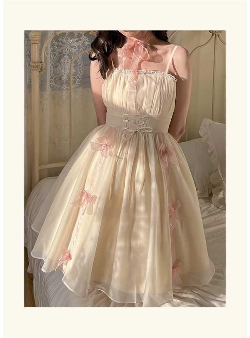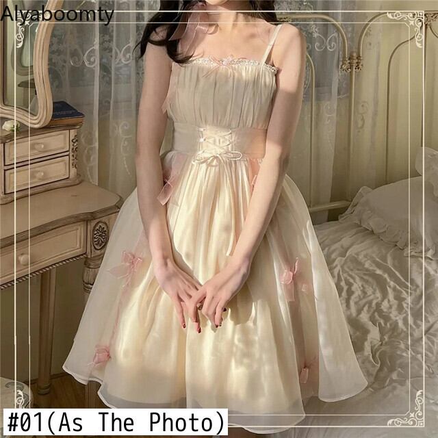 送料無料୨♥୧ スタイルサマーレディースドレス ベージュバンドリボンノースリーブ 大人ガーリー スウィート キュート カジュアル 夏物 AOS13871227552