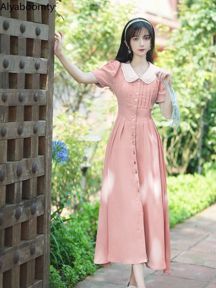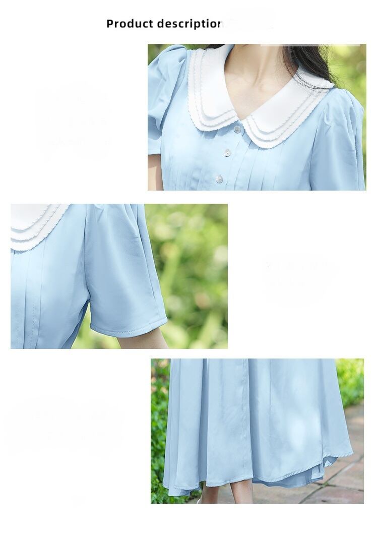 送料無料୨♥୧ スタイルサマーレディースミディドレス カラーブルーシャツ スリーブ ピンク 大人ガーリー スウィート キュート カジュアル 夏物 AOS35596096257
