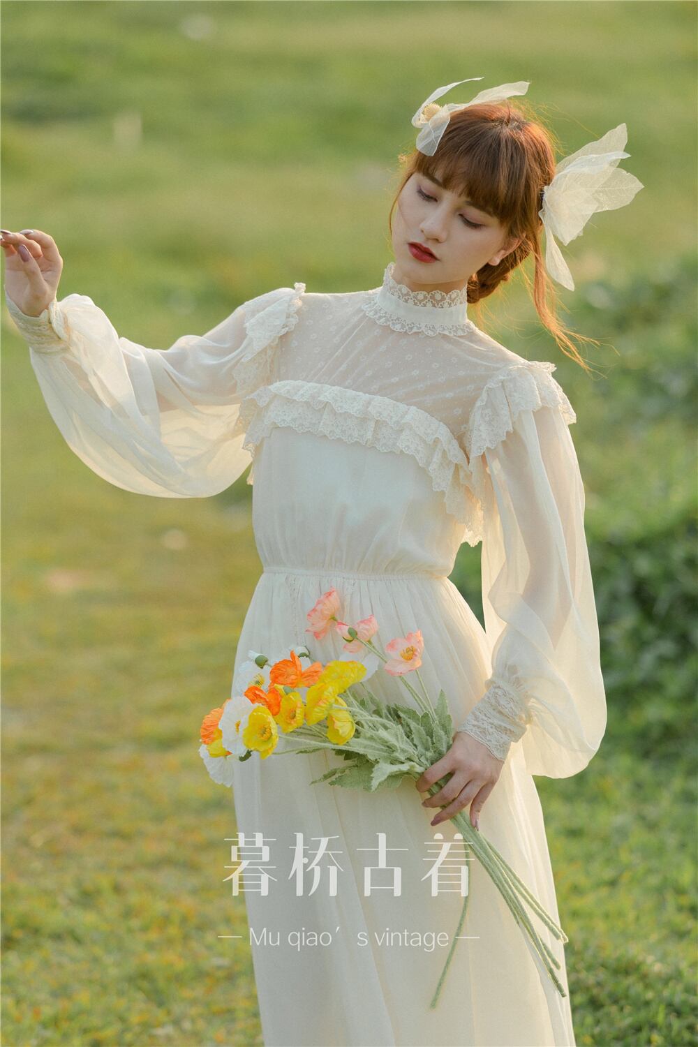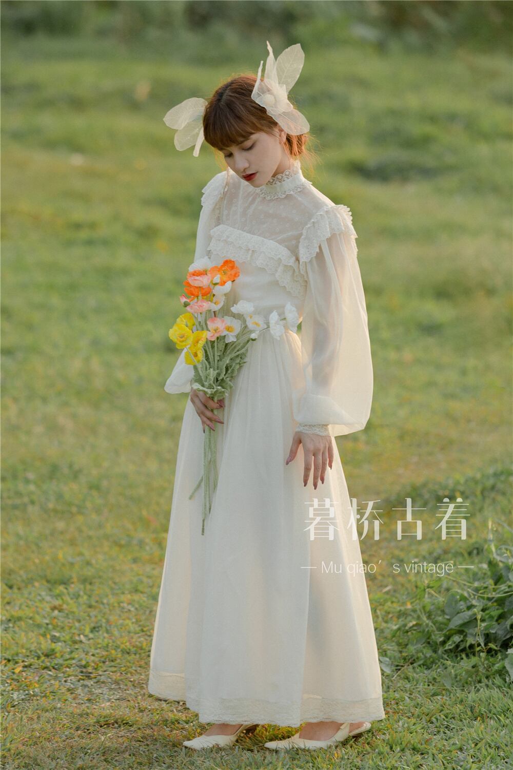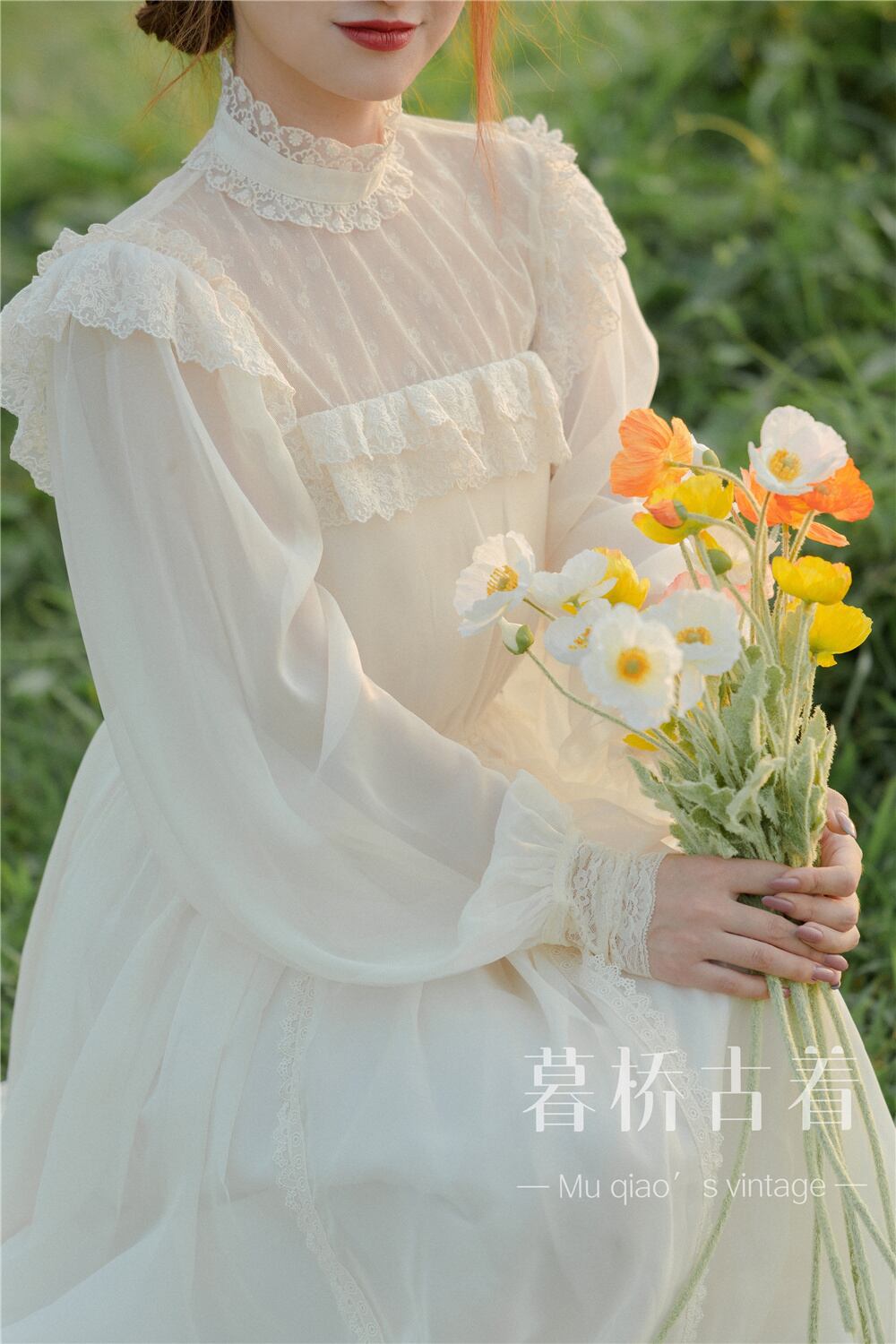 送料無料୨♥୧ スプリングオータムレディースミディドレス レースフリルシフォンスリーブドレス ワンピース ランタンスリーブ ラッフル 春物 秋物 AOS41187971539