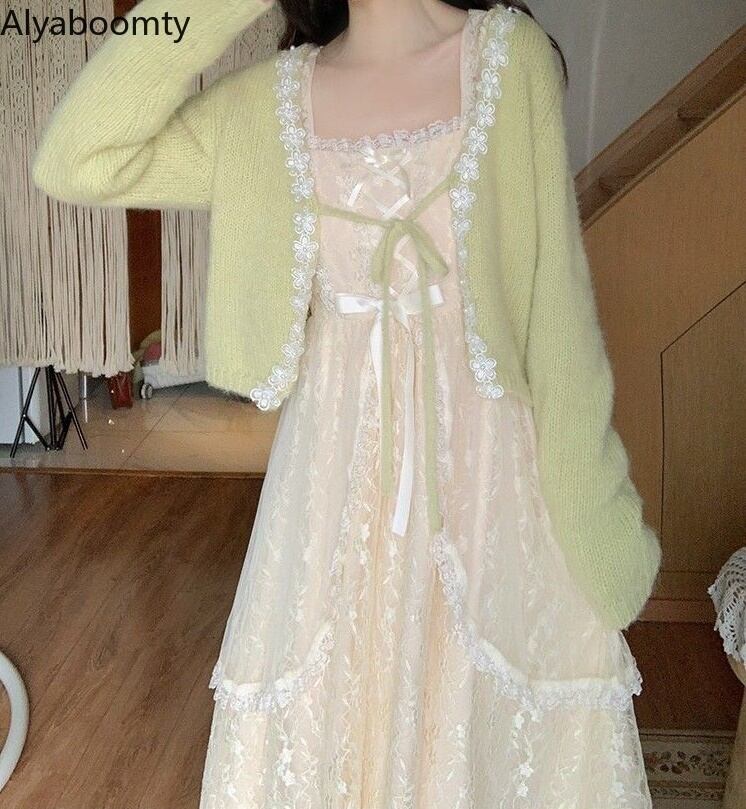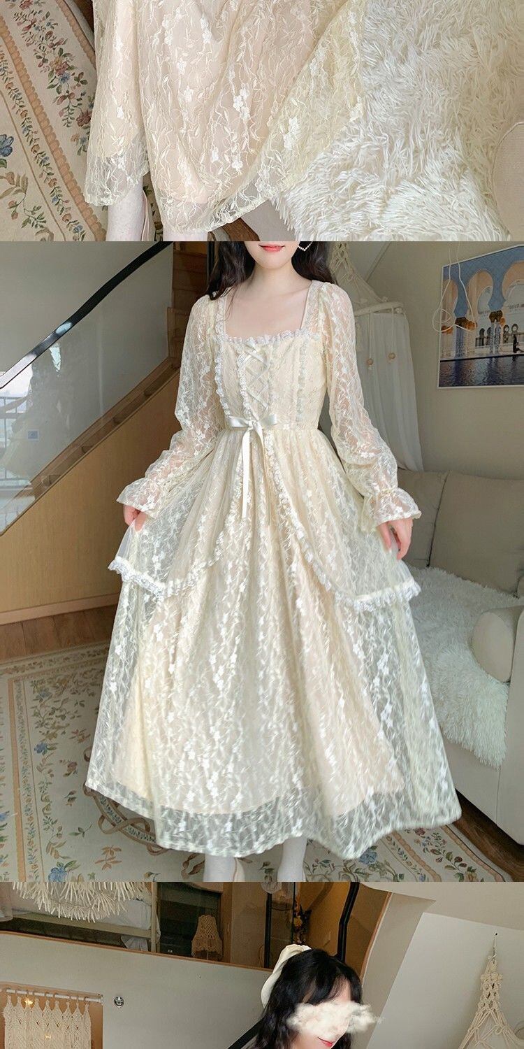 送料無料୨♥୧ スプリングオータムレディースミディAラインドレス カラーバンドフローラルレース 春物 秋物 花柄 スクウェア AOS22040058645