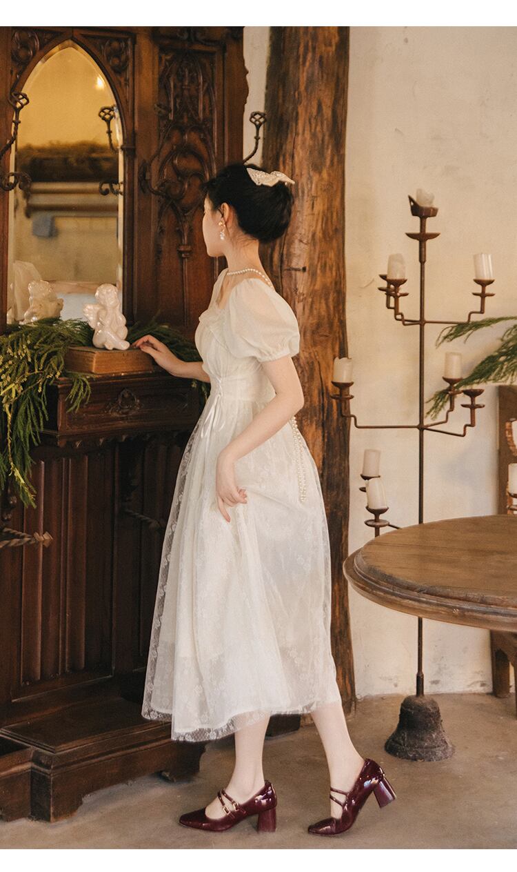 送料無料୨♥୧ サマーレディースミディドレス カラーレースバンドスリーブ 大人ガーリー スウィート キュート カジュアル 夏物 スクウェア AOS77210363844