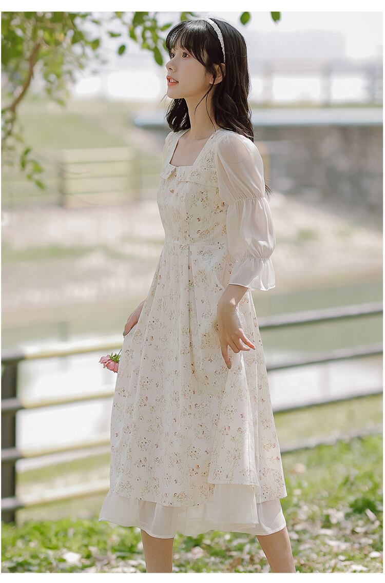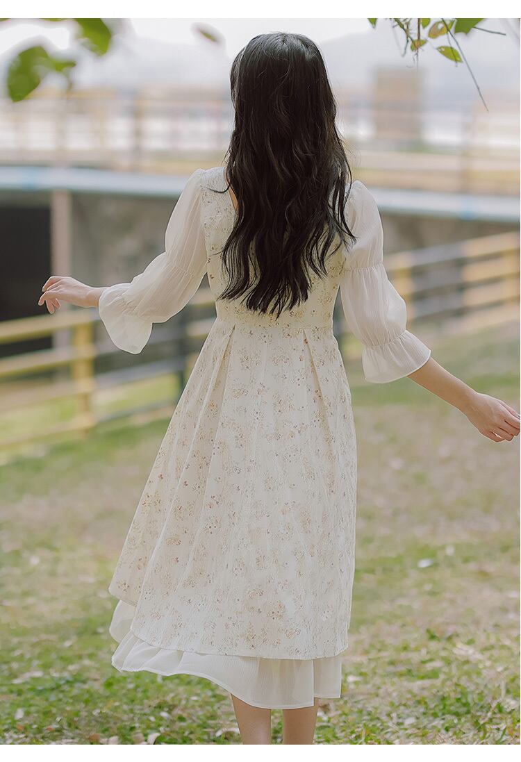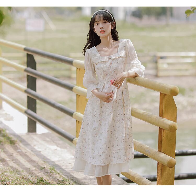 送料無料୨♥୧ サマーレディースミディドレス カラーパッチワークフローラルレースシフォン 大人ガーリー スウィート キュート カジュアル 夏物 花柄 スクウェア AOS8099532137