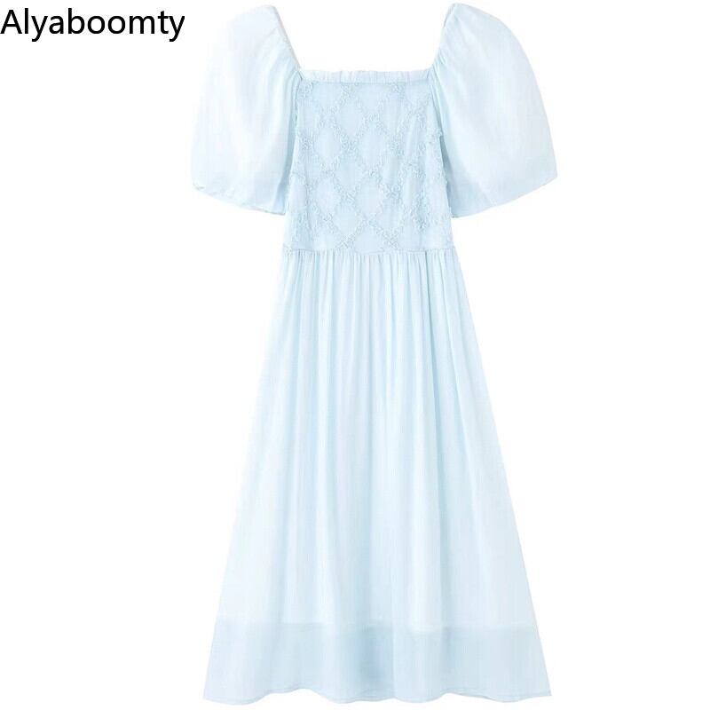 送料無料୨♥୧ サマーレディースブルードレス カラースタイルAラインスリーブ 大人ガーリー スウィート キュート カジュアル 夏物 スクウェア AOS66885977527