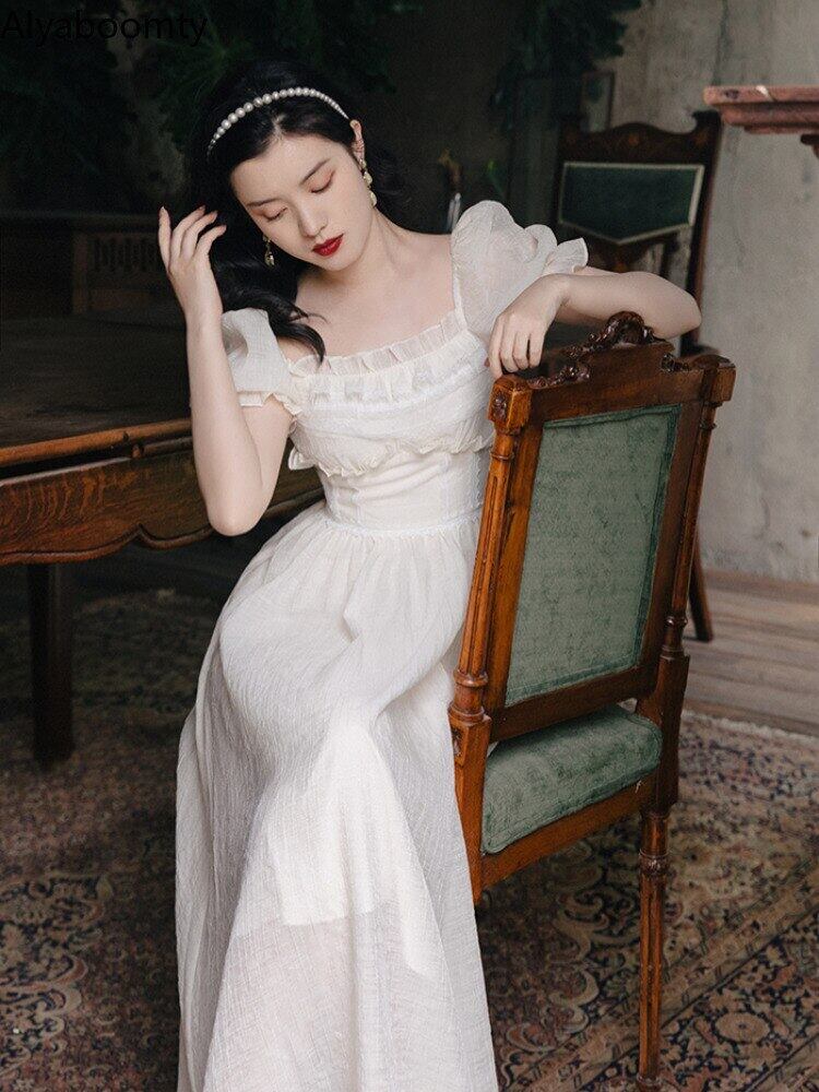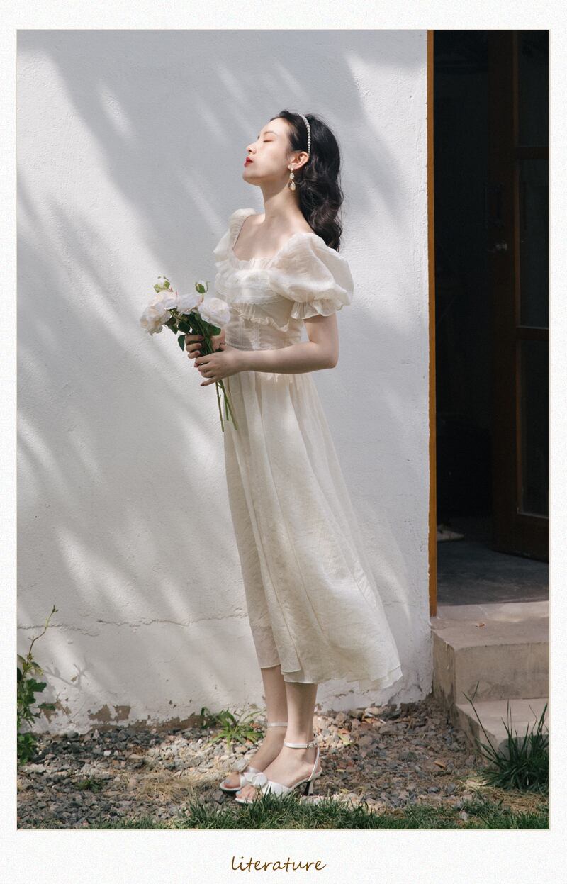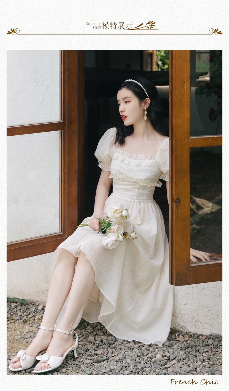 送料無料୨♥୧ サマーレディースミディドレス カラーフリルソリッド スリーブ ラッフル 夏物 ソリッドカラー スクウェア AOS21971762680