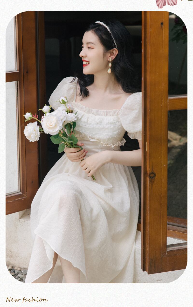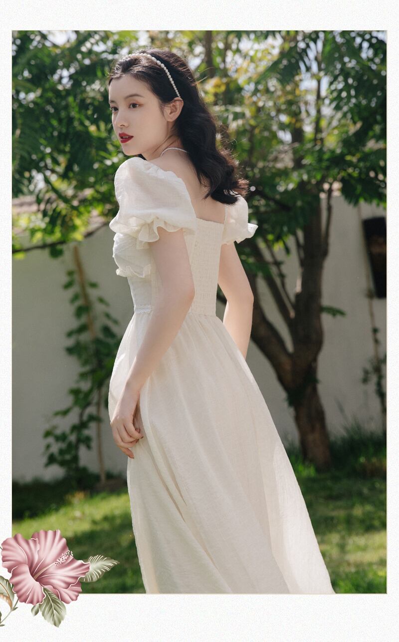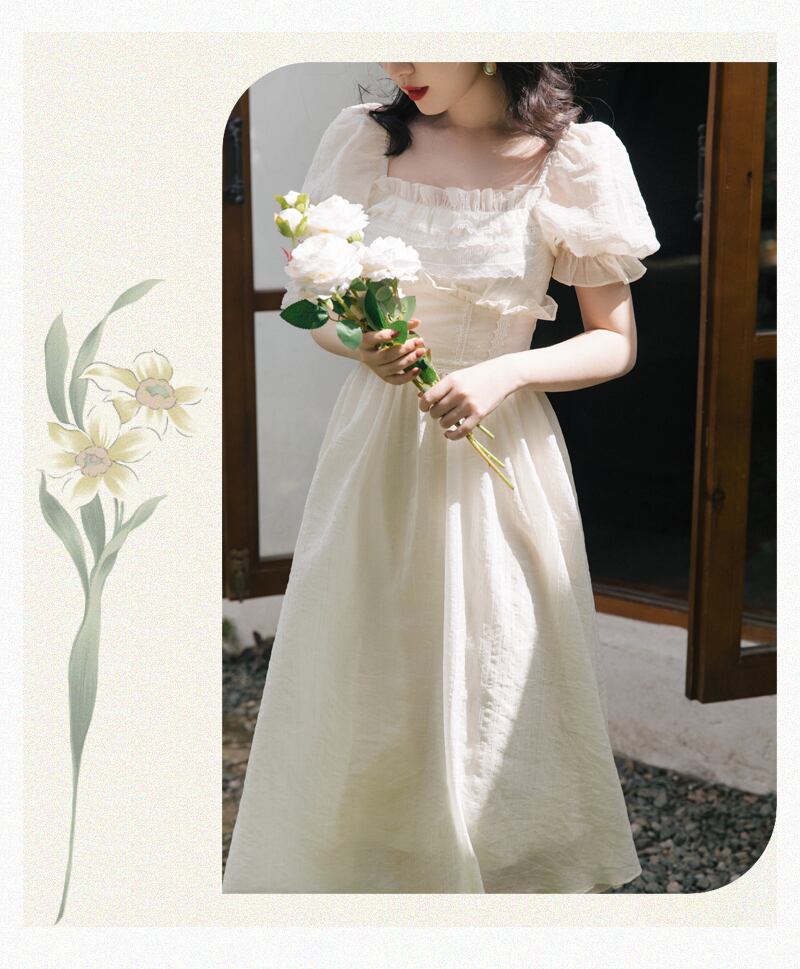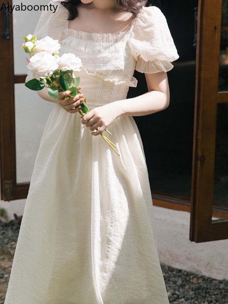 送料無料୨♥୧ サマーレディースミディドレス カラーフリルソリッド スリーブ ラッフル 夏物 ソリッドカラー スクウェア AOS25326228363