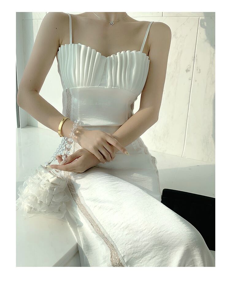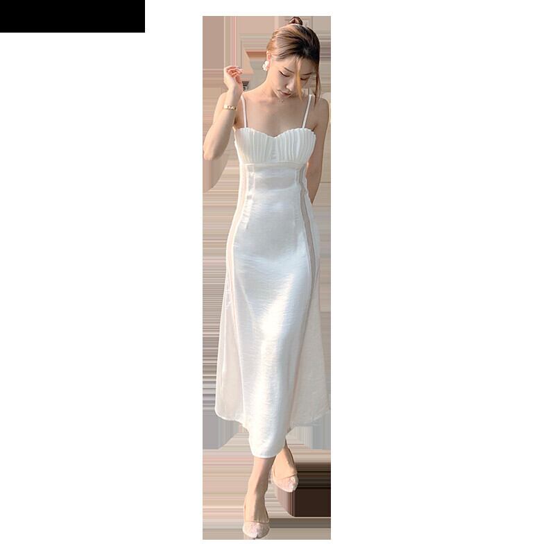 送料無料୨♥୧ サマーレディースロングサテンホワイトドレス バックレスレースノースリーブ 夏物 ビーチ AOS65796935726