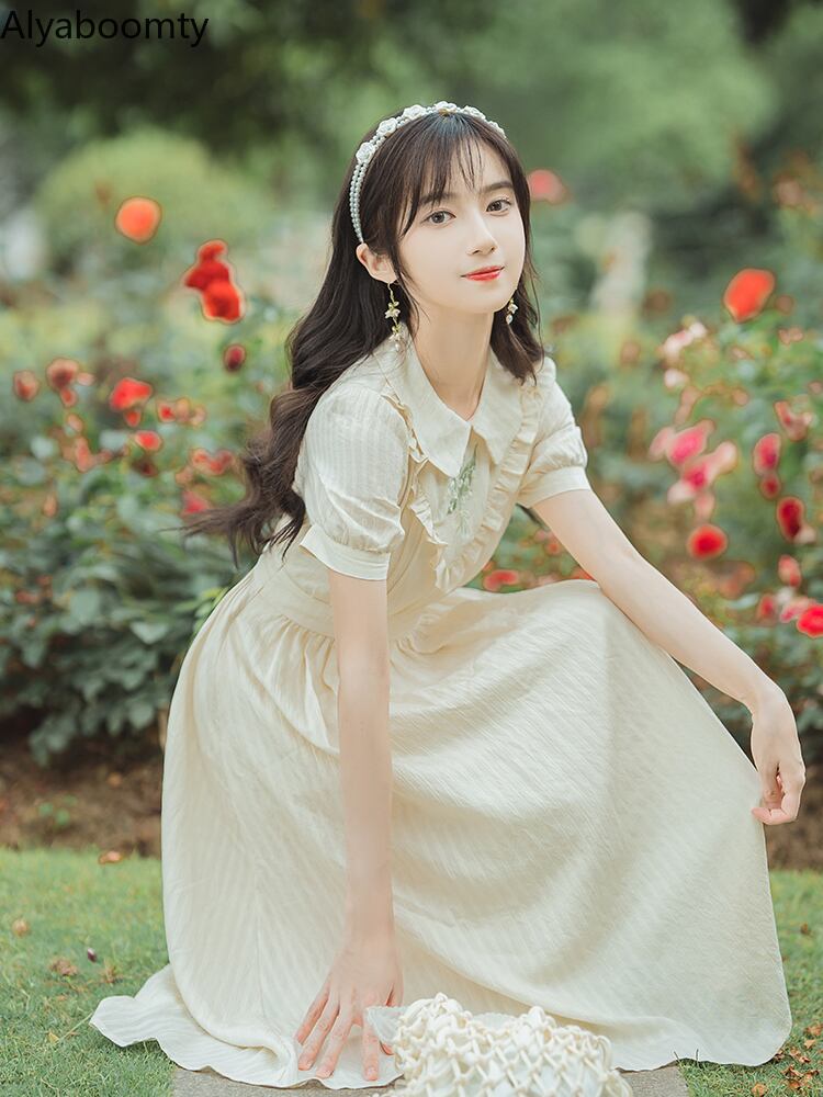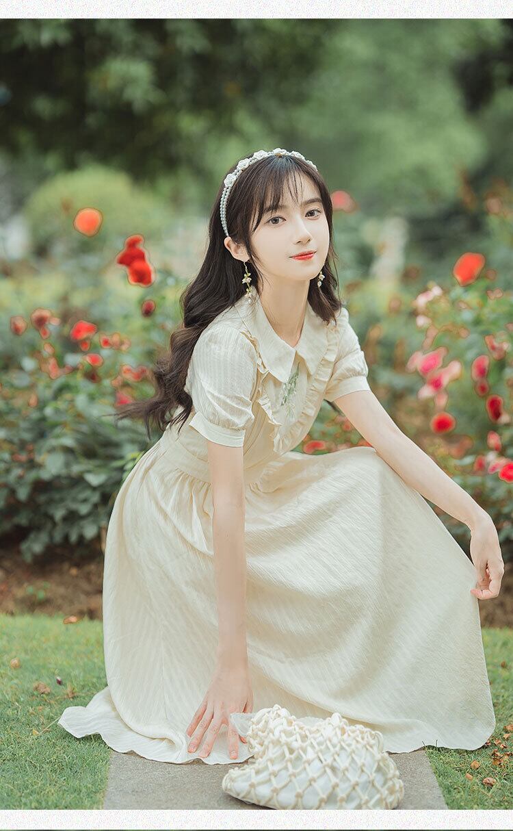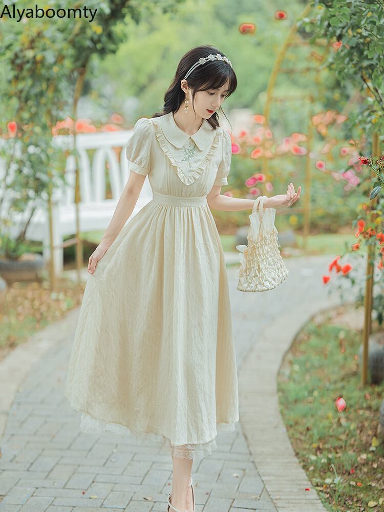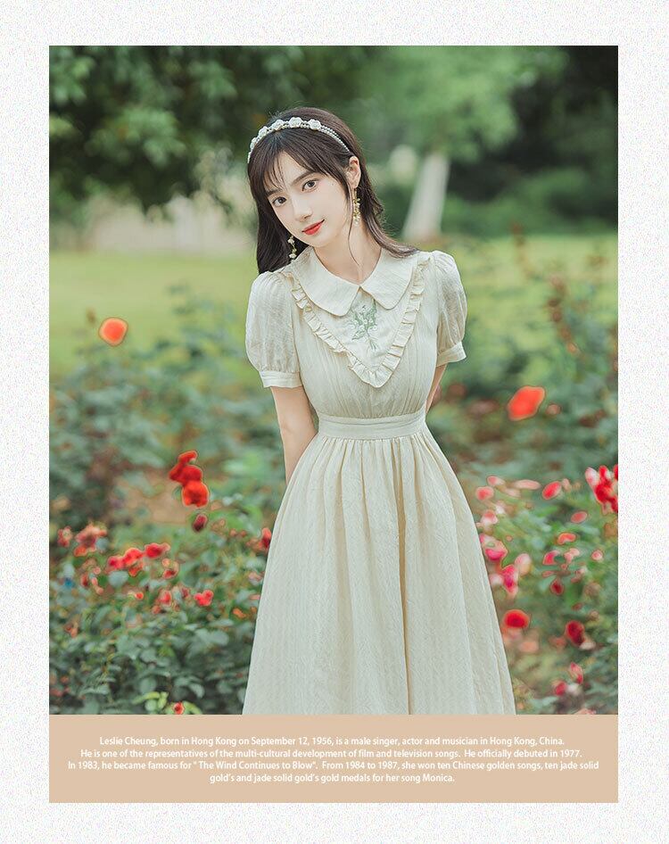 送料無料୨♥୧ サマーレディースミディドレス カラーフローラル刺繍スタイルスリーブヴィンテージドレス ワンピース 大人ガーリー スウィート キュート カジュアル 夏物 花柄 ビンテージ AOS32865518369
