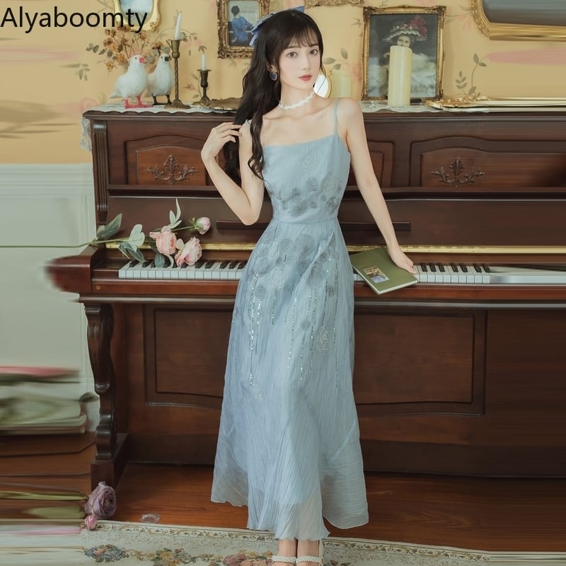 送料無料୨♥୧ サマーレディースミディドレス カラーフローラル刺繍ドレス ワンピース 夏物 花柄 スクウェア AOS33405725161