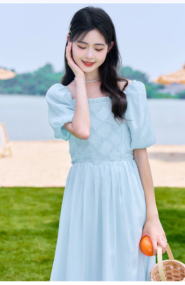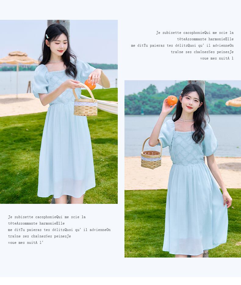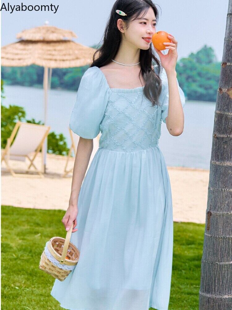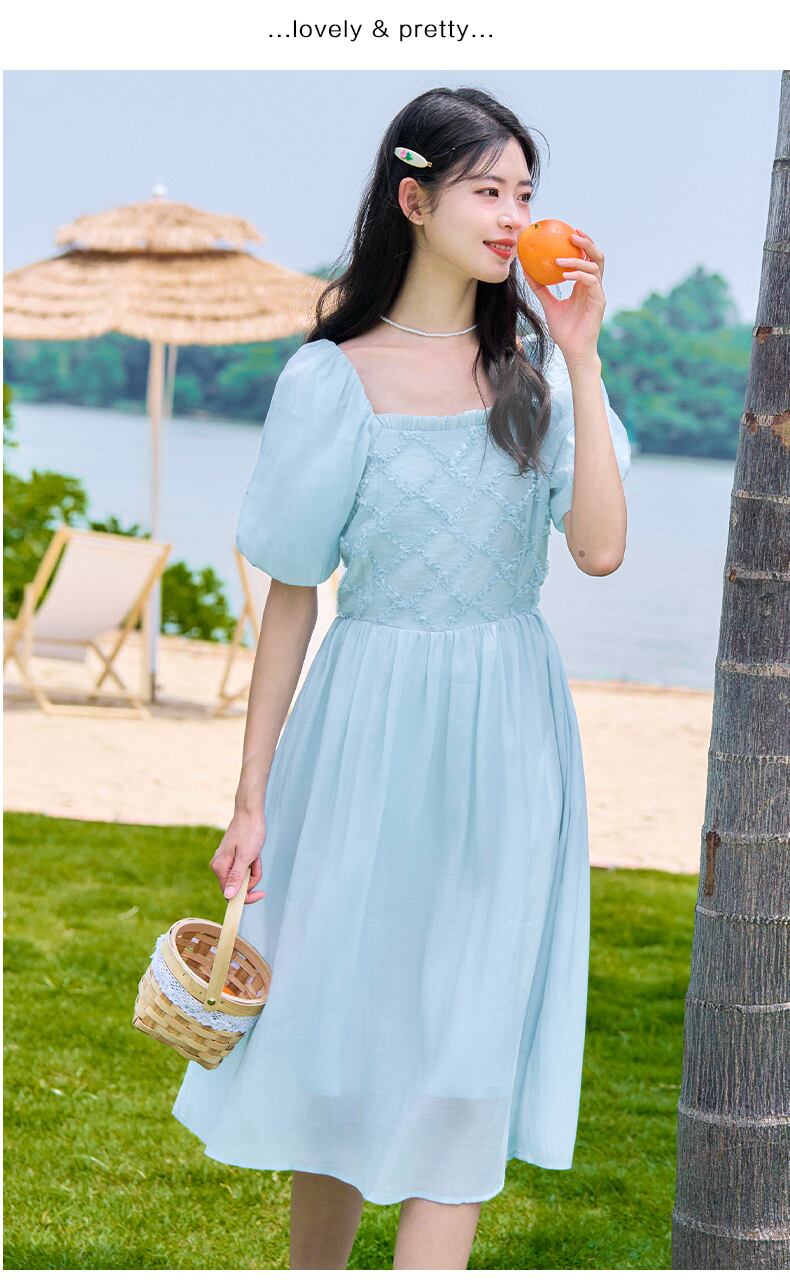 送料無料୨♥୧ サマーレディースブルードレス カラースタイルAラインスリーブ 大人ガーリー スウィート キュート カジュアル 夏物 スクウェア AOS90742441603