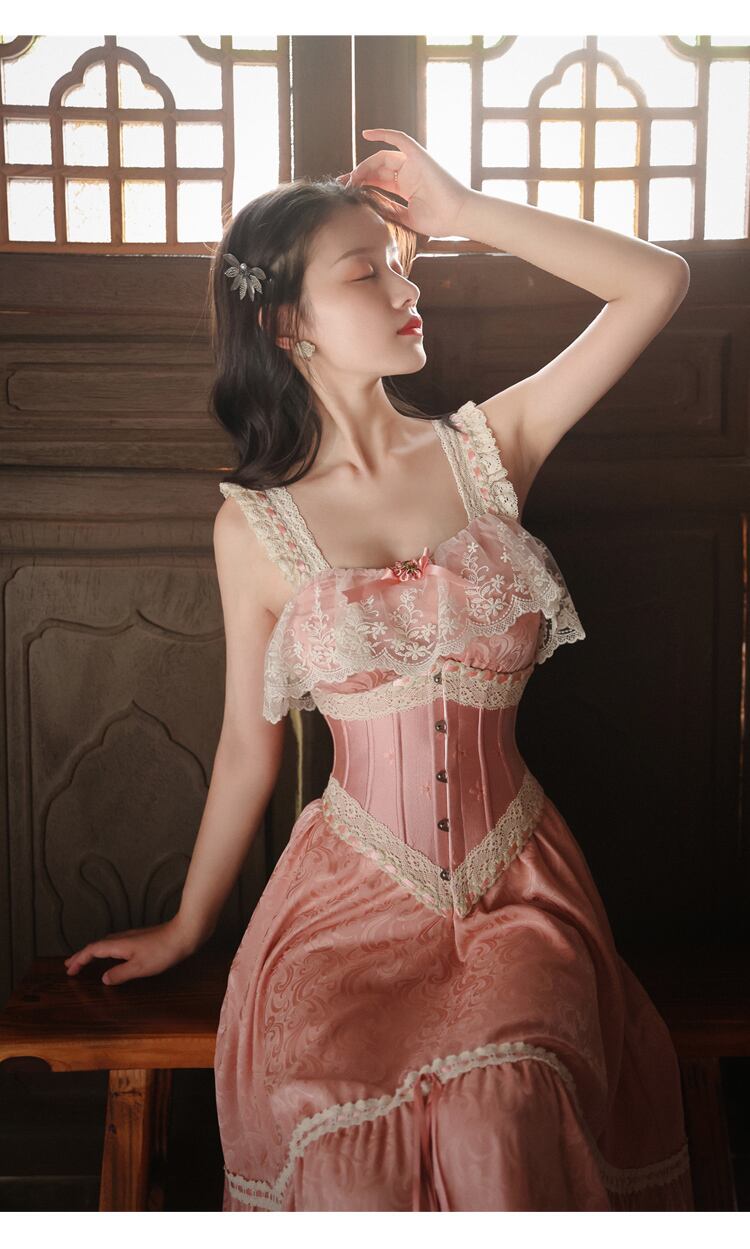 送料無料୨♥୧ サマーレディースミディドレス フローラルレースフリルノースリーブバンド ピンク ラッフル 夏物 花柄 AOS23558113671