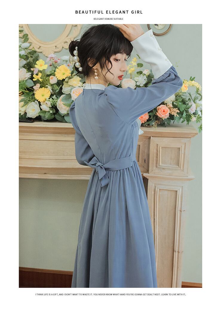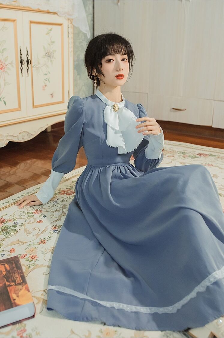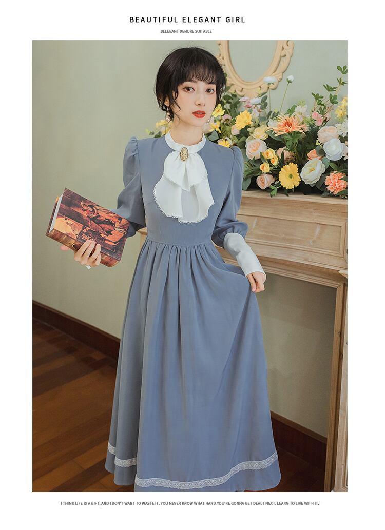 送料無料୨♥୧ スタイルスプリングオータムレディースドレス レーススリーブミディドレス ワンピース ランタンスリーブ 春物 秋物 Oネック ヨーロピアン AOS66492469354