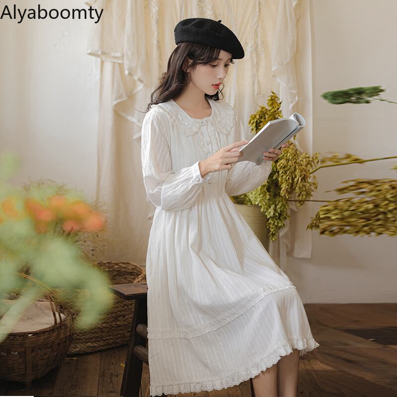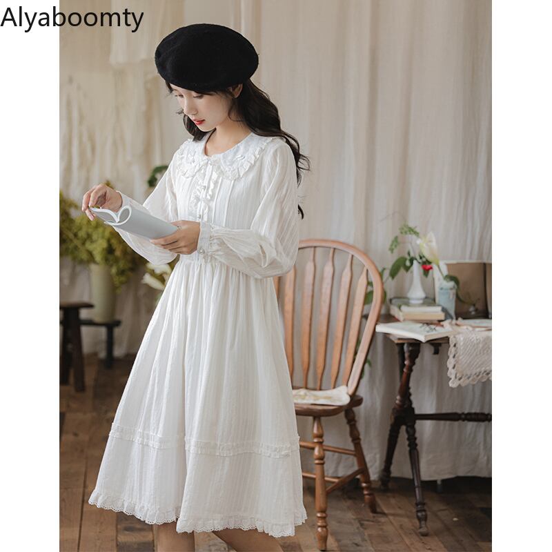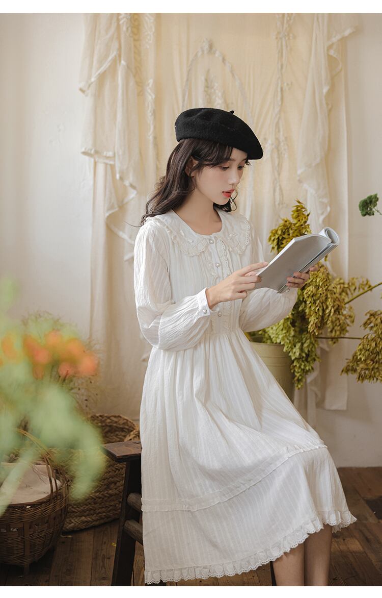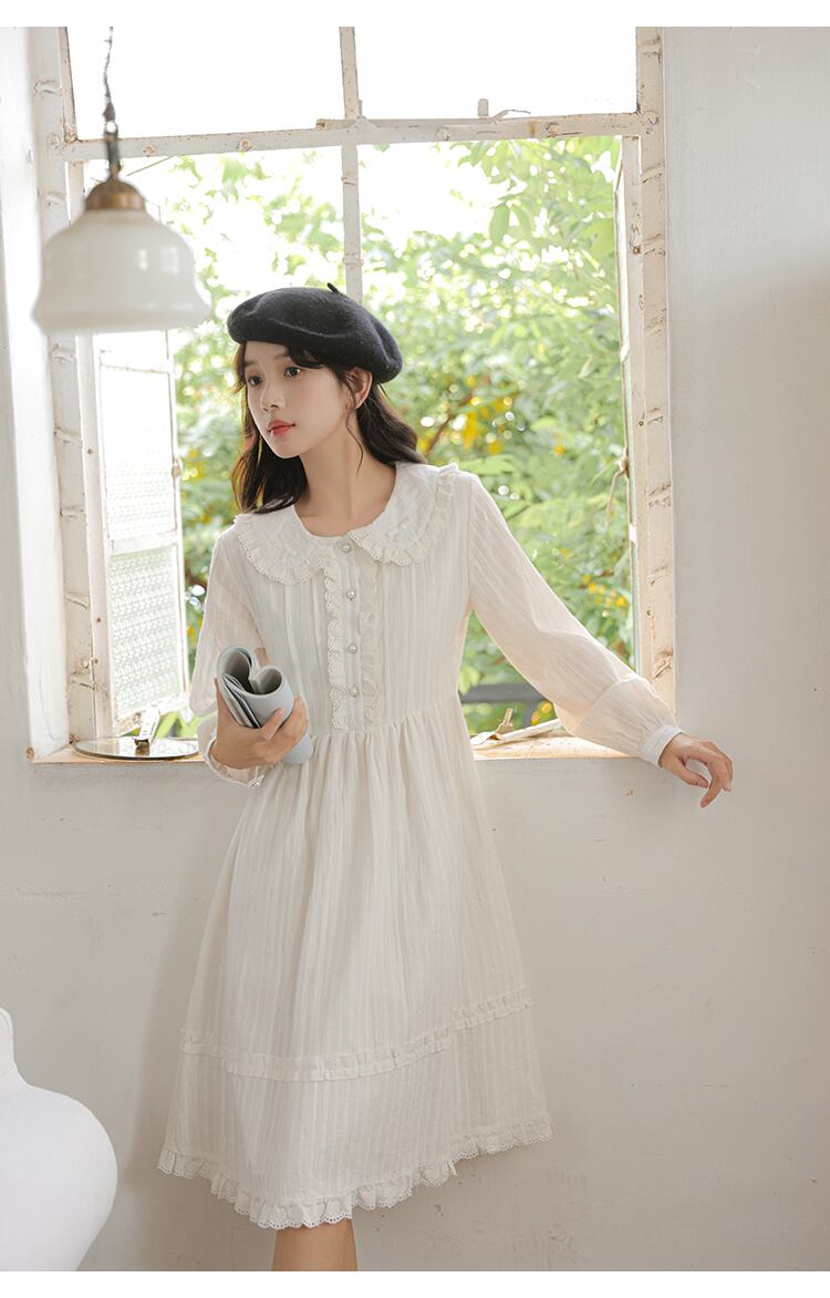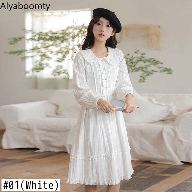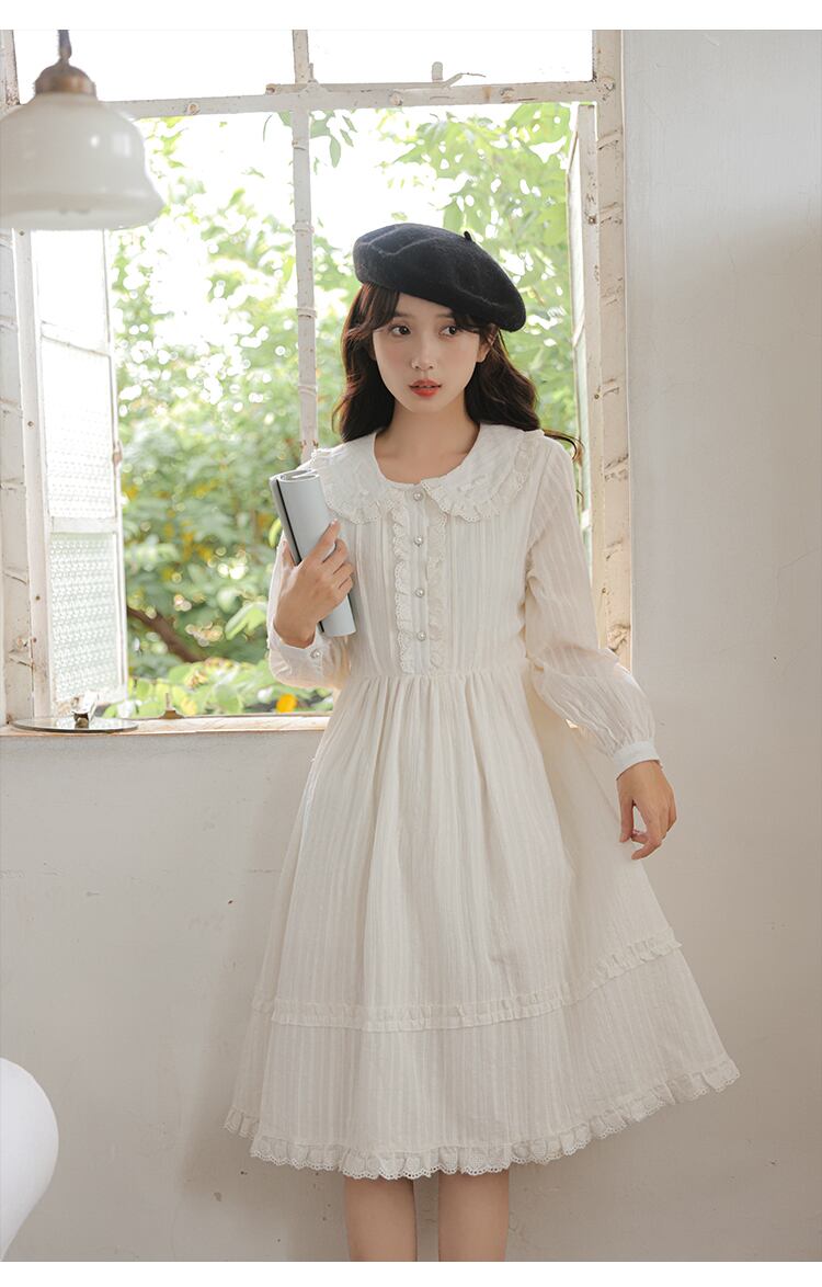 送料無料୨♥୧ スプリングレディースホワイトドレス カラーリボンレーススリーブ コットン 大人ガーリー スウィート キュート カジュアル 春物 AOS25841203643