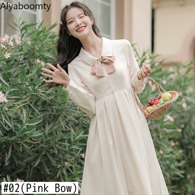 送料無料୨♥୧ スプリングレディースドレス カラーリボンスタイルプリーツ 大人ガーリー スウィート キュート カジュアル 春物 AOS72826419631