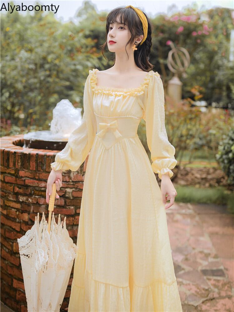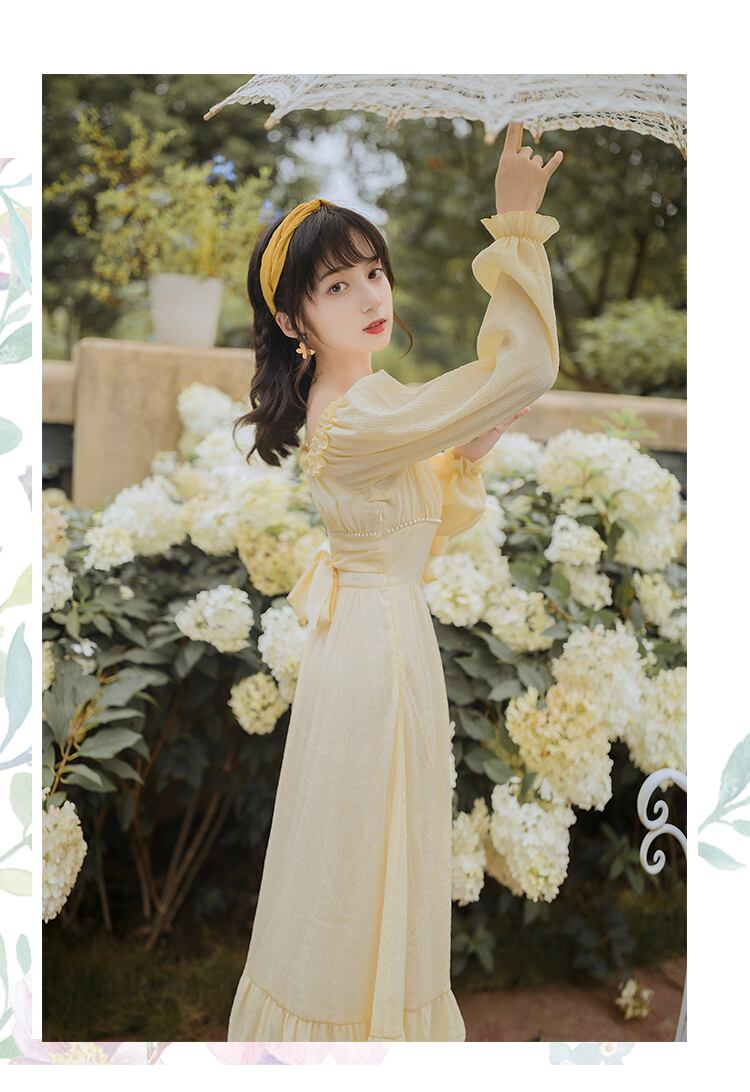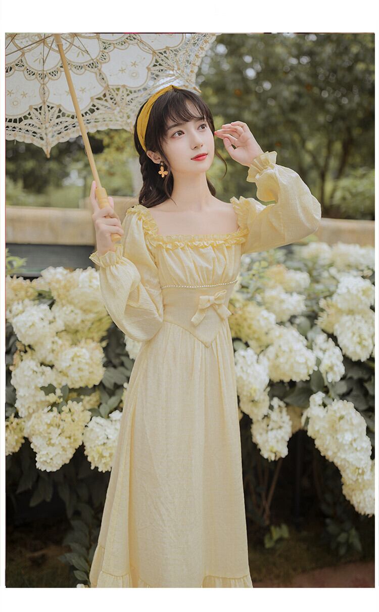 送料無料୨♥୧ スタイルスプリングレディースミディドレス カラーリボンフリル ラッフル 春物 スクウェア AOS71264211019