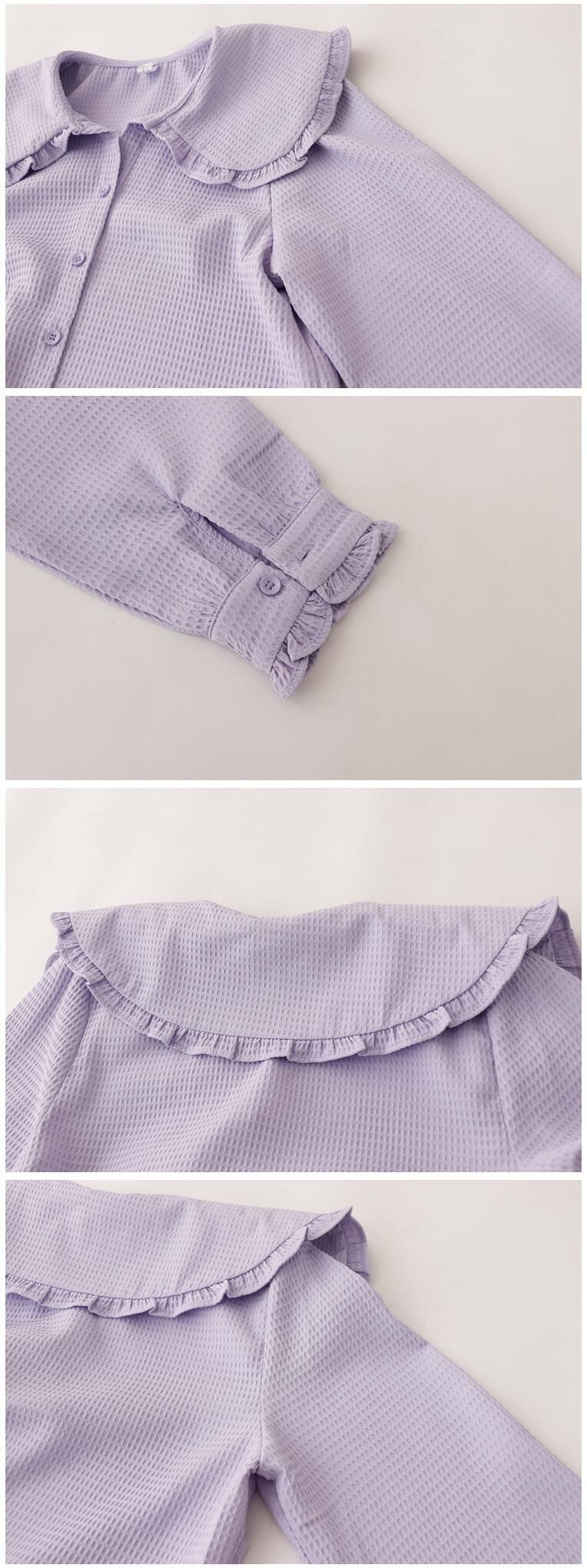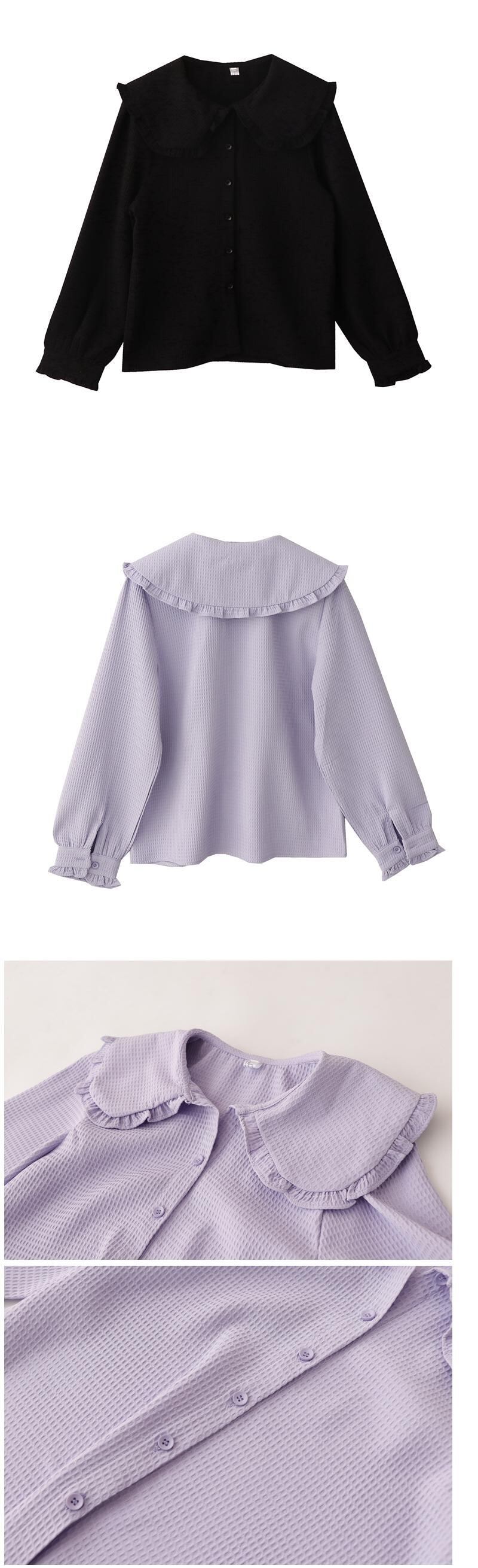 送料無料୨♥୧ カラースプリングオータムレディースブラウス ルーズブラックホワイトグリーンブルーレッドシャツ 大人ガーリー スウィート キュート カジュアル 春物 秋物 パープル AOS2205021641