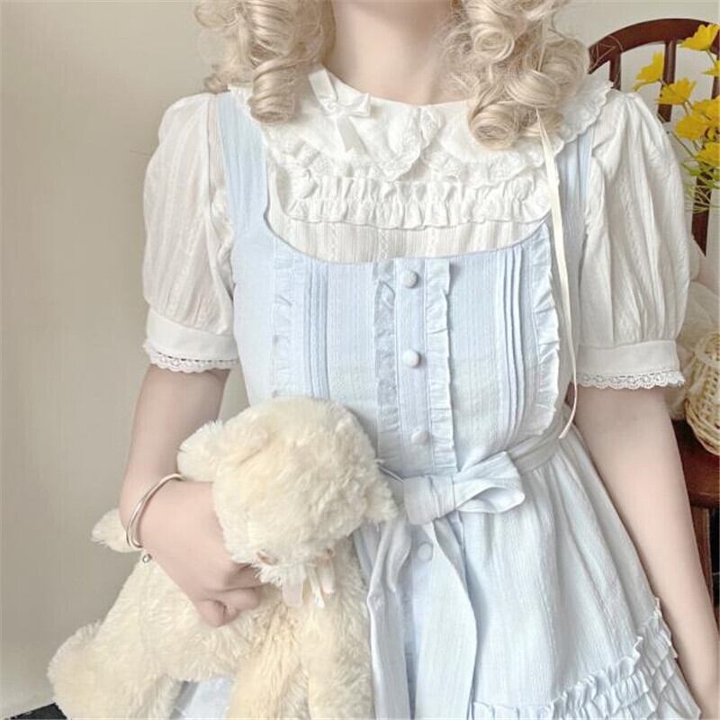 送料無料୨♥୧ サマーレディースホワイトブラックブラウス カラーリボンフリルシャツ クロップトップ トップス コットン ラッフル 大人ガーリー スウィート キュート カジュアル 夏物 AOS78003181395